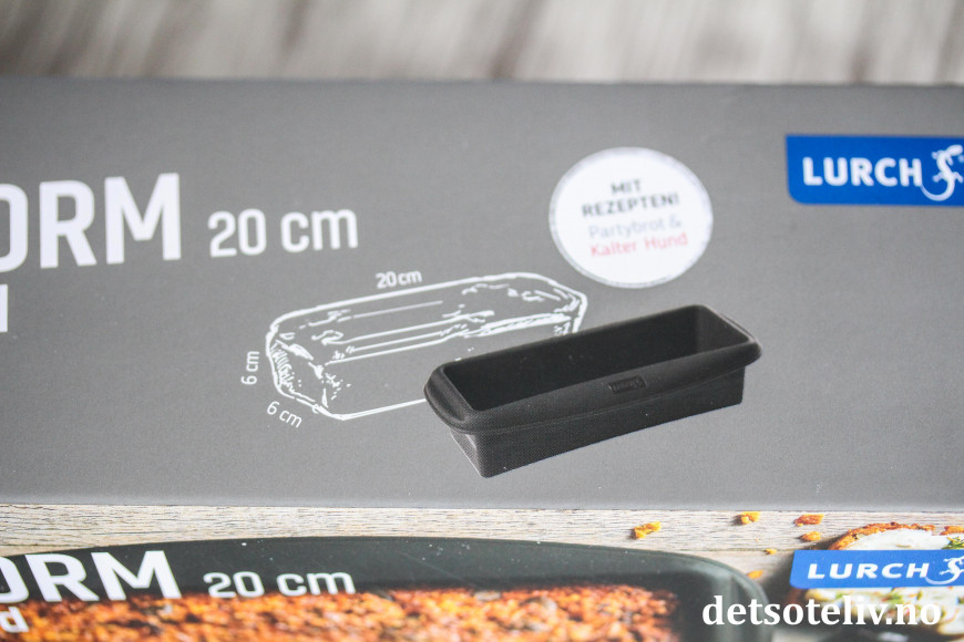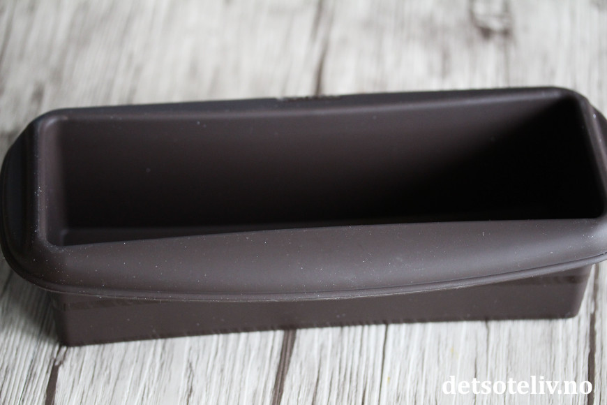 Jeg brukte i tillegg en smal form i silikon som er 20 cm lang og 6 cm bred.