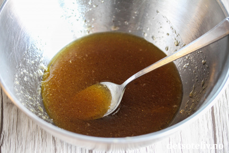 I en annen bolle røres honning og olivenolje ut med kokende varmt vann.