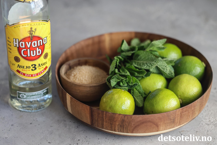 ♥ Rom (Bacardi eller Havana Club 3 anos) kjøpes på polet. Mojitokaken inneholder ikke noe særlig alkohol fordi alkoholen fordunster når du koker mojitosirupen.