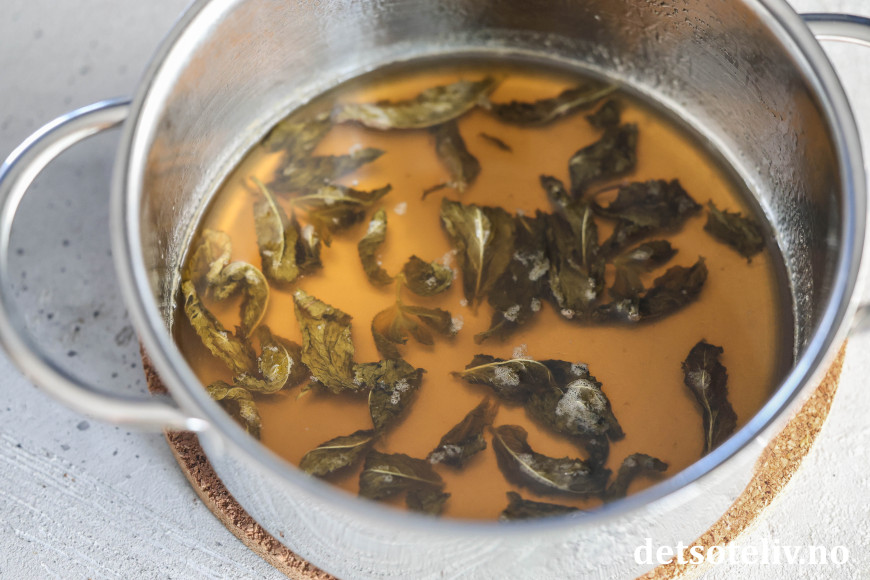 Ta kjelen av platen og la sirupen trekke i 10 minutter.