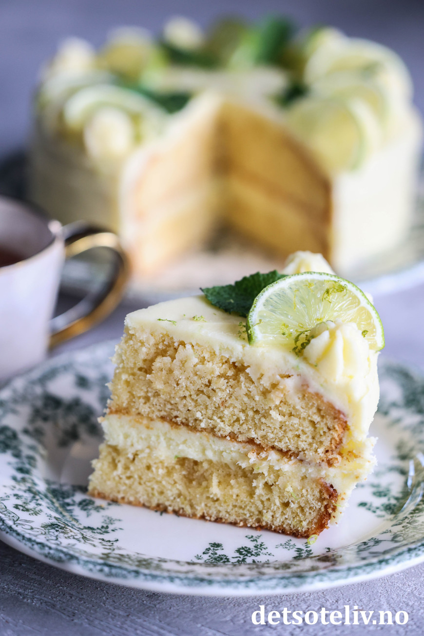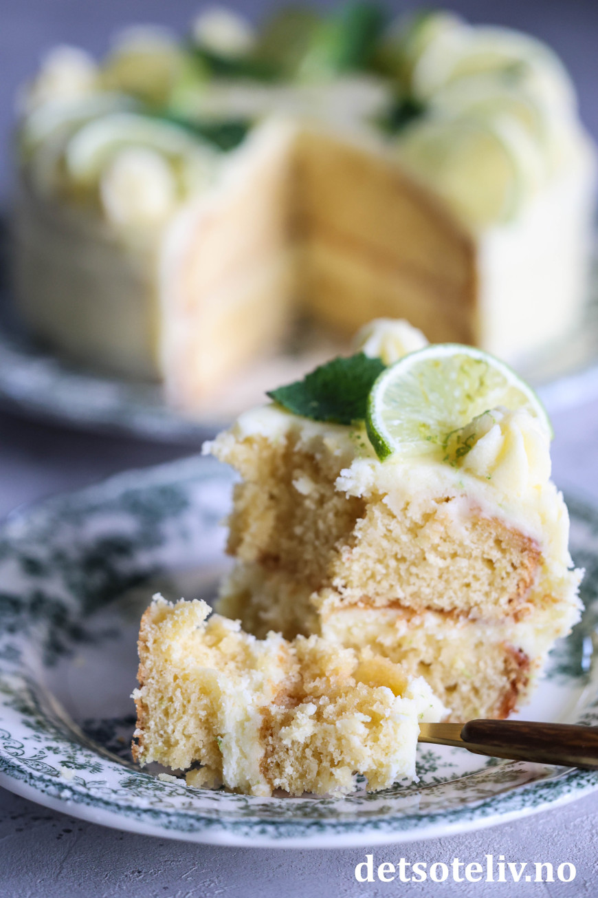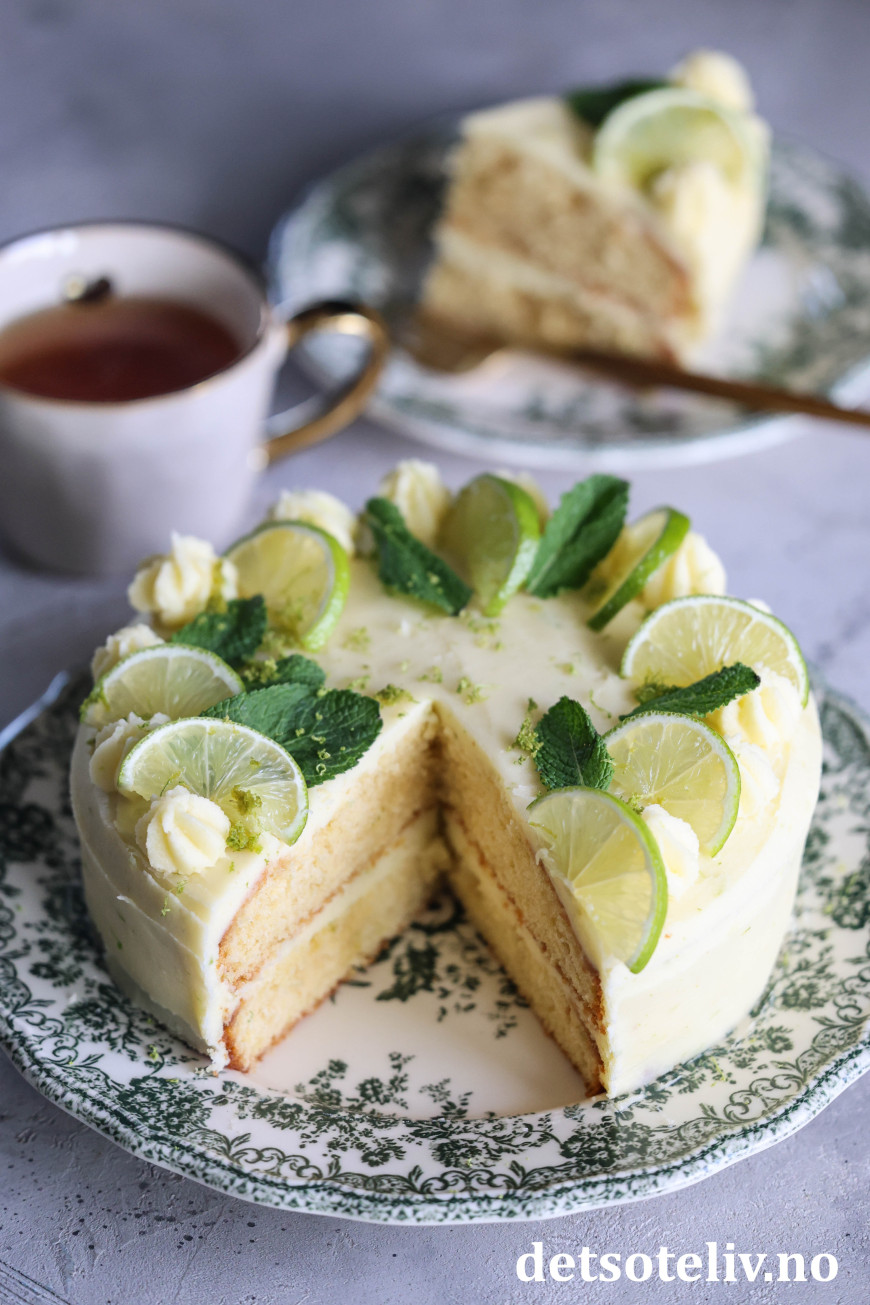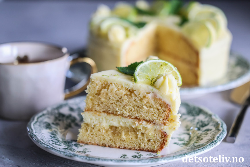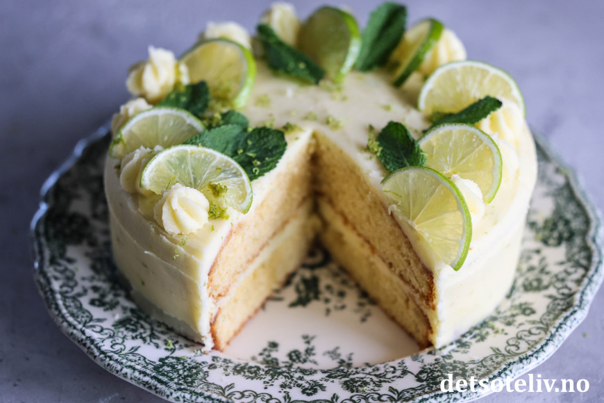 Kaken får nydelig smak av lime og mynte!