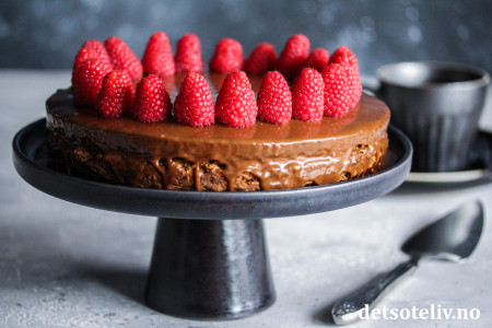 Her har du en nydelig sjokoladekake, med vidunderlig smak sjokolade, kaffe og bringebær!