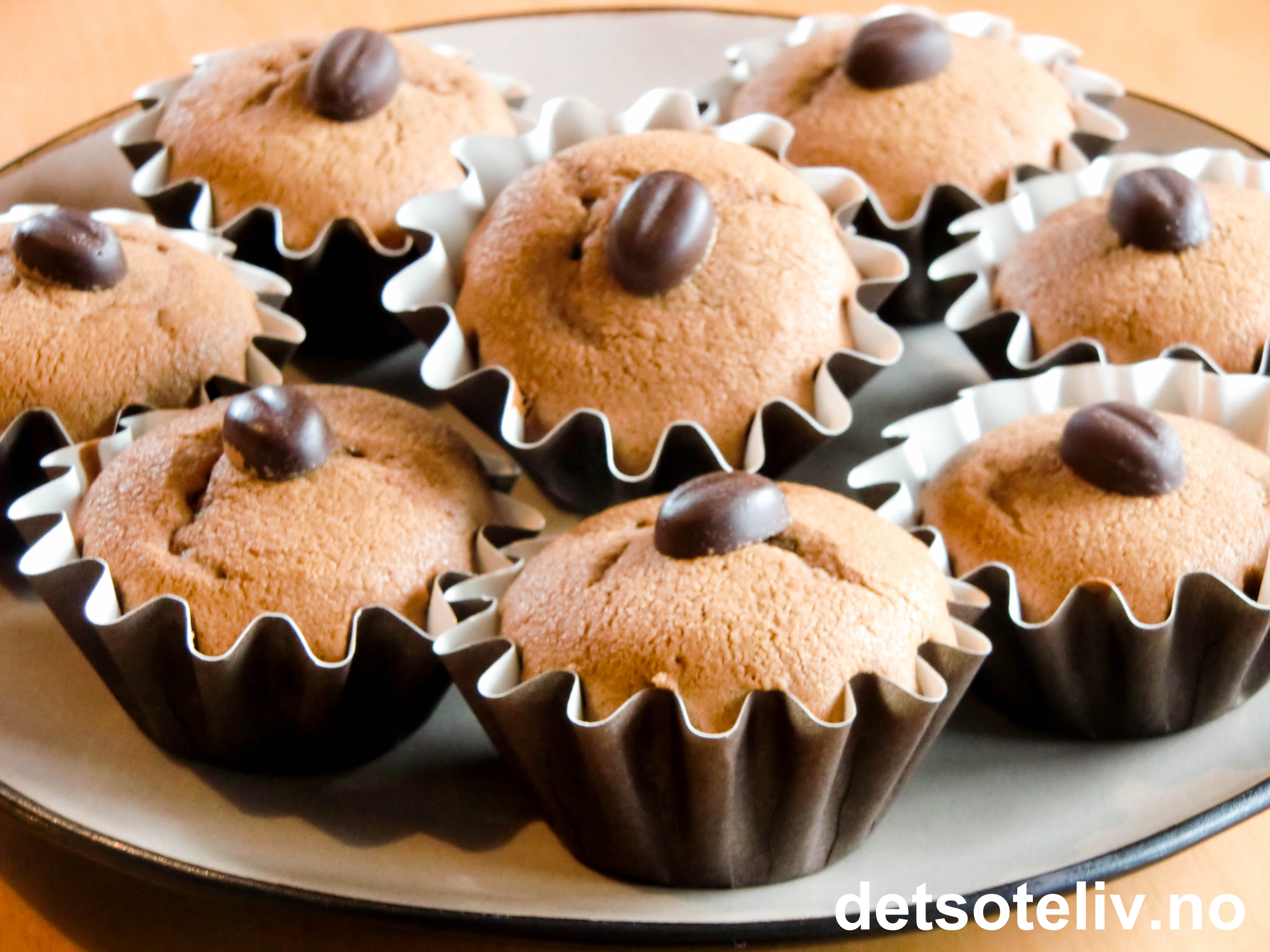 Legg eventuelt en mokkabønne på toppen av hver muffins til pynt mens muffinsene fortsatt er varme.