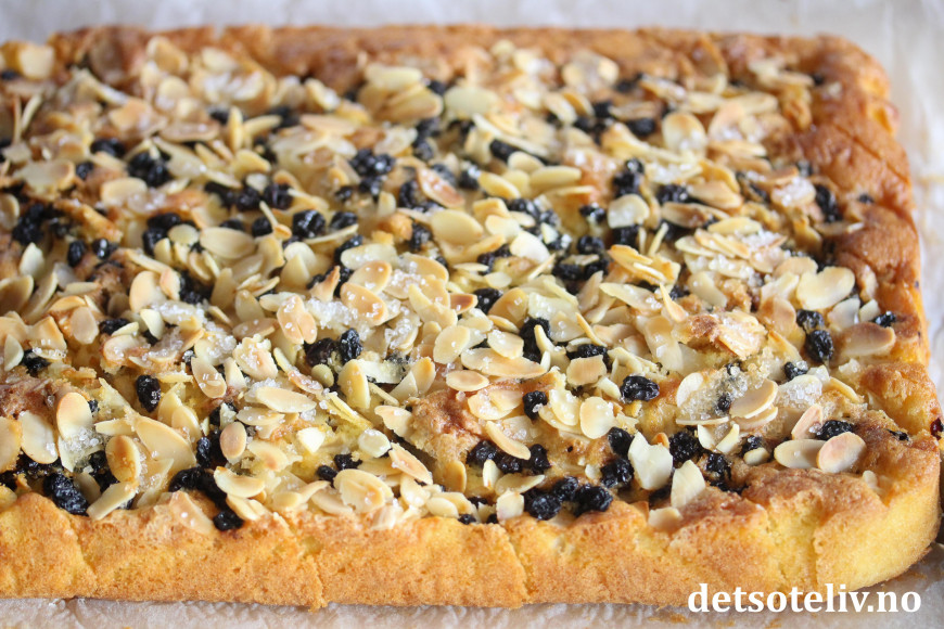 Ha deigen i en liten, bakepapirkledd langpanne (ca 20 x 30 cm).
