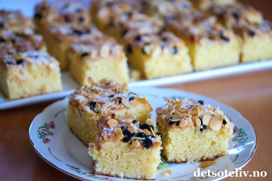 Her har du en oppskrift til stor langpanne. Se også oppskriften på Mor Monsen til liten langpanne, som tidligere er lagt inn her på detsoteliv.no. Men hvorfor lage en liten porsjon? 😊 Kaken holder seg myk lenge og forsvinner dessuten fort fordi den er så utrolig god!