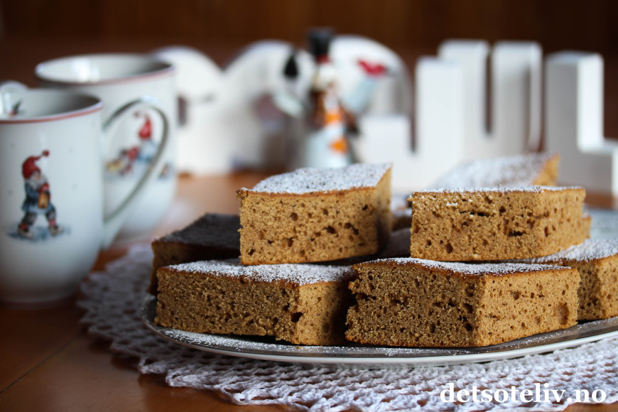 Sirupskaken inneholder mye mørk sirup i tillegg til brunt sukker og krydder. Resultatet er en myk og litt kompakt kake med nydelig smak! Krydderet gjør at kaken passer veldig godt til juletider.