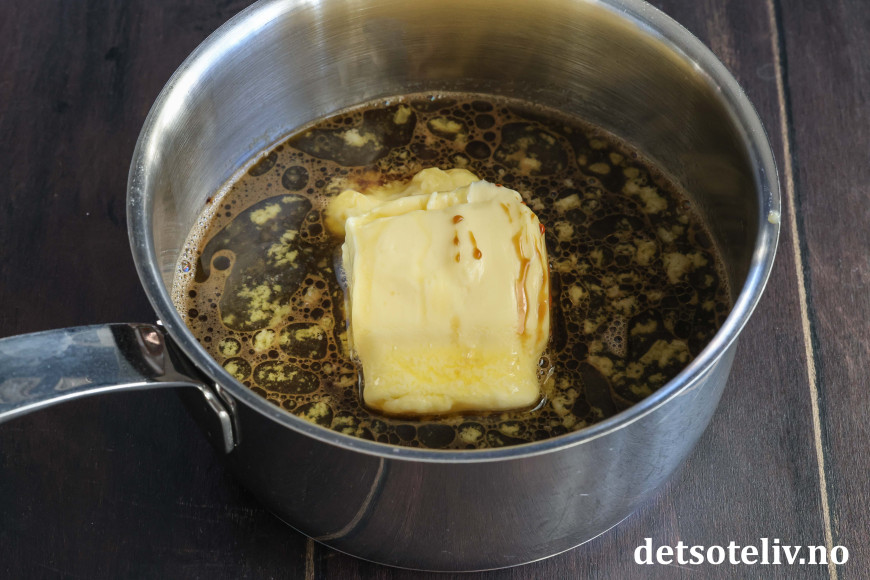 Varm opp på middels varme til smøret har smeltet. Ta kjelen av platen.