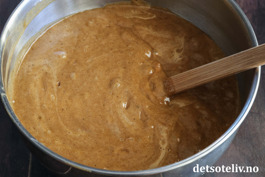 ♥ Rør minst mulig i deigen etter at hvetemelet er tilsatt. Dette for å sikre at kaken blir myk og saftig og ikke tung og kompakt. Jeg rører for hånd med en ballongvisp og stopper røringen straks deigen er klumpfri.