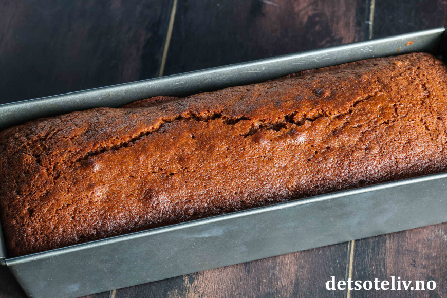 Stek kaken midt i ovnen ved 175°C i ca. 45 minutter (sjekk med kakenål at kaken er gjennomstekt før du tar den ut av ovnen).
