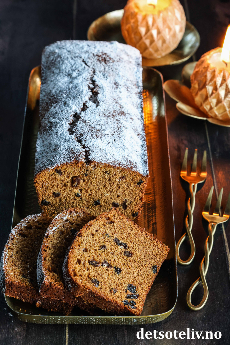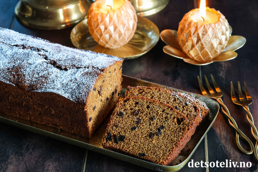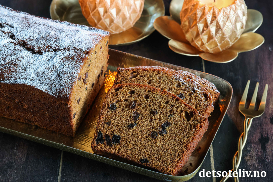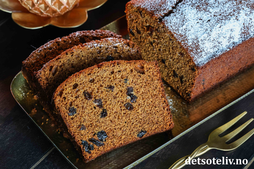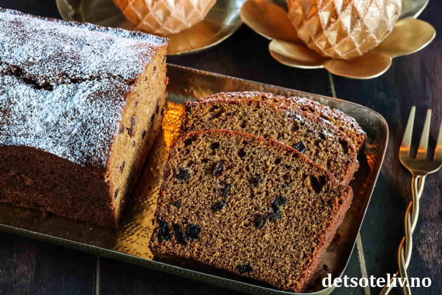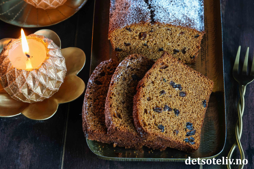 Deilig, myk og krydret sirupskake med rosiner!