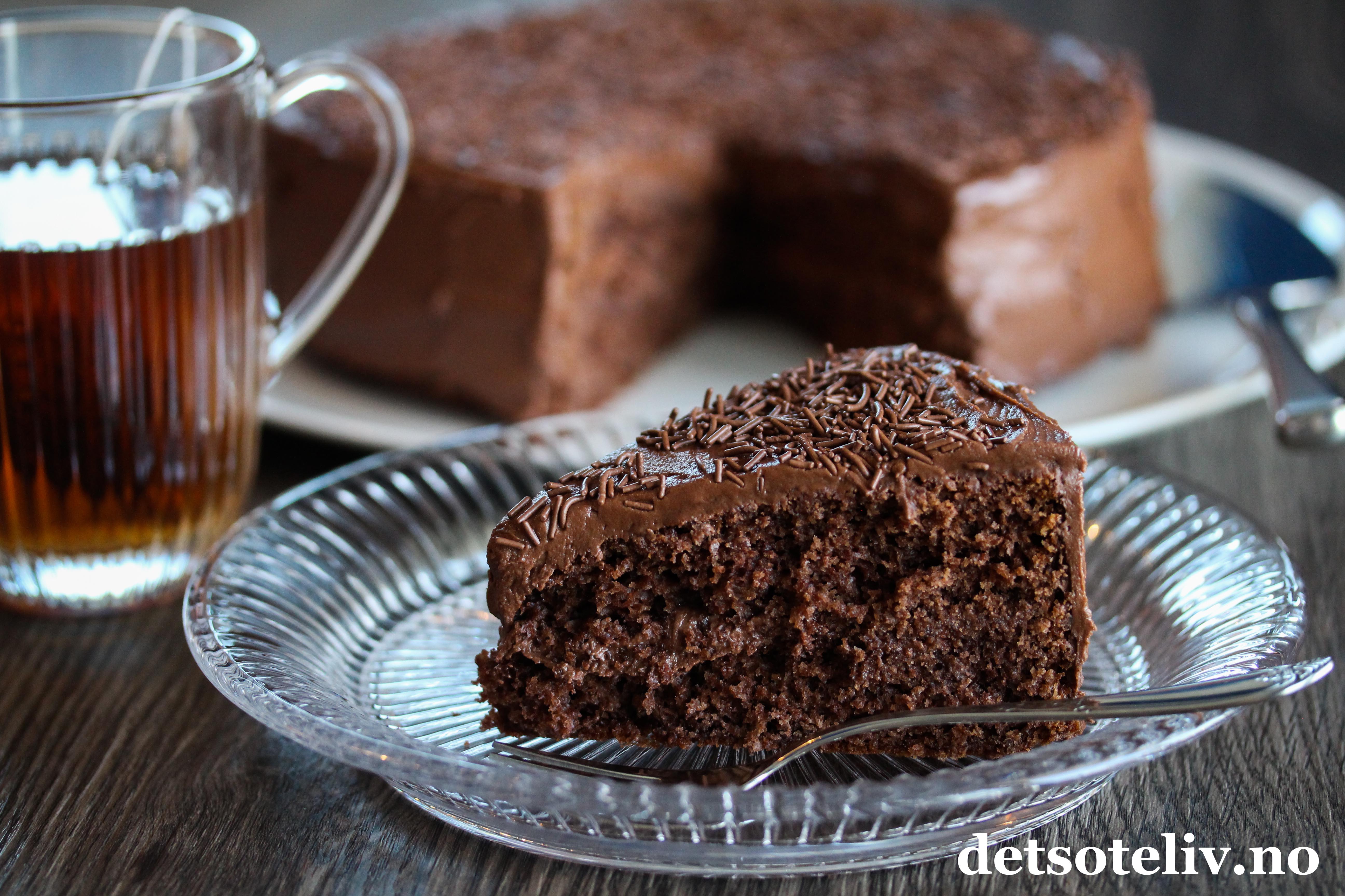 Tilpass mengden kaffe i kremen slik at den får passe tykk smørekonsistens. Kaken kan smuldre litt når du smører utover sjokoladekremen. Da kan det hjelpe å dyppe smørekniven jevnlig i et glass med varm vann.