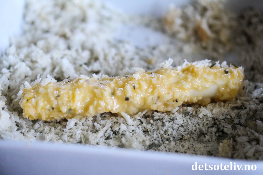 Fokuser på at ostestengene skal bli så godt dekket som mulig (se tips).