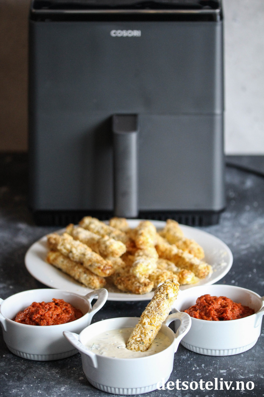 ♥ Mozzarella sticks er aller best når de er varme, nystekte og helt bløte inni. Ved avkjøling stivner osten inni stengene. Da er det bare å gi dem et lite minutt i airfryeren igjen, så blir osten smeltet igjen.