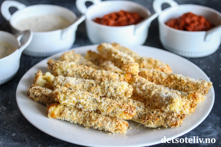 ♥ Bruk mozzarella ostestenger med fettinnhold, ellers vil stengene kunne få en gummiaktig konsistens.