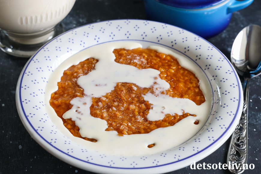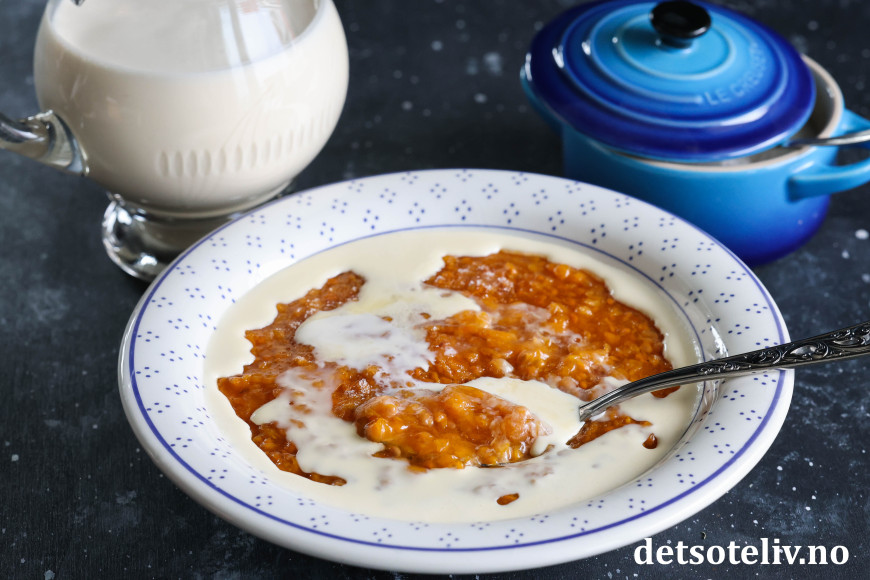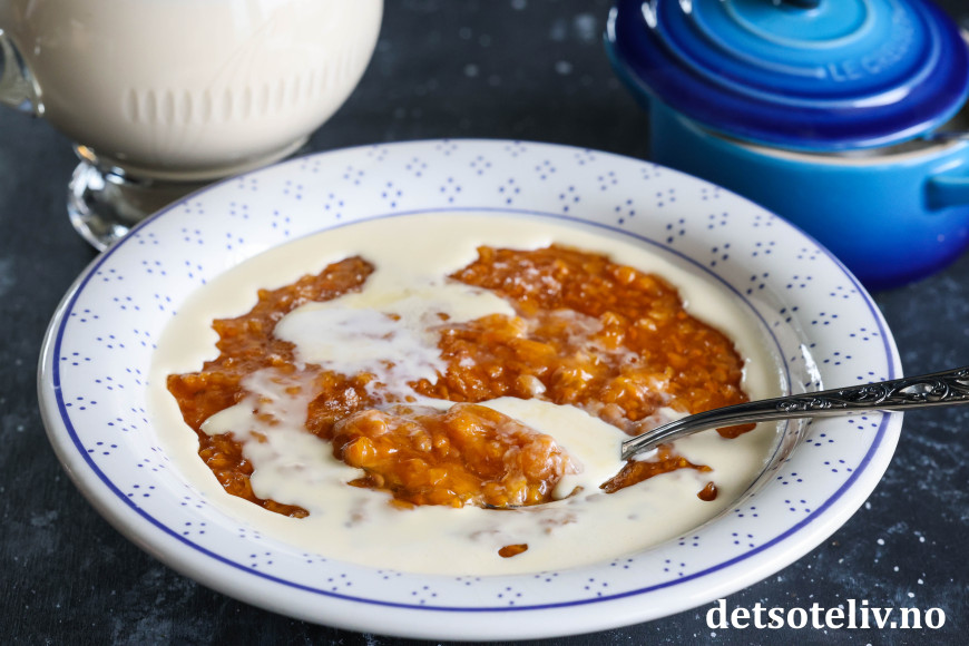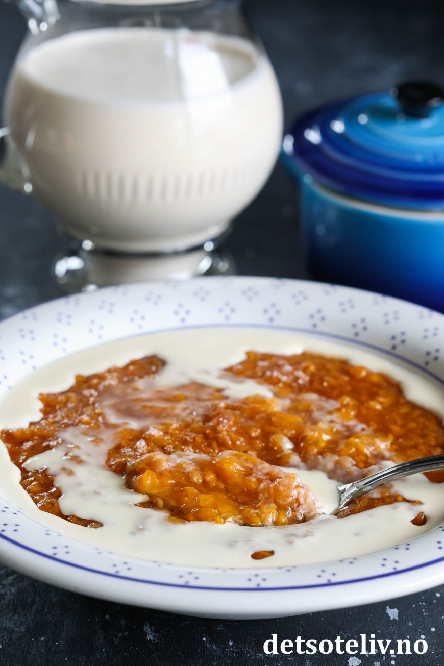 Multegrøt kan også serveres med en kule vaniljeis. Eller hjemmelaget vaniljesaus.😋