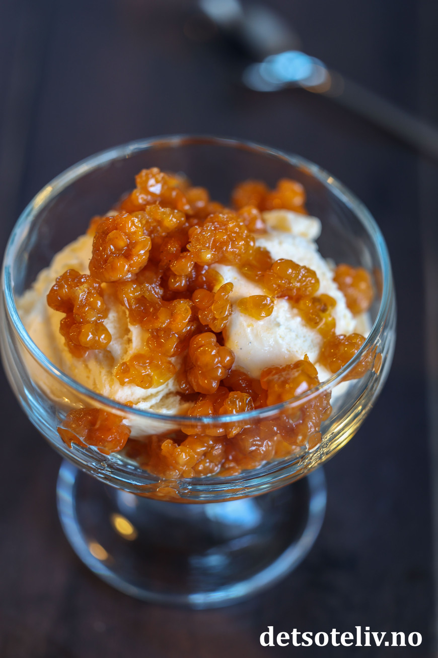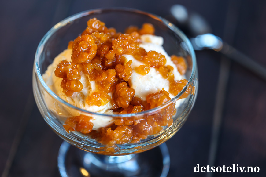 ♥ Når likøren er ferdig, kan multene som er gjennomtrukne av sprit, serveres som dessert til voksne, sammen med iskrem.