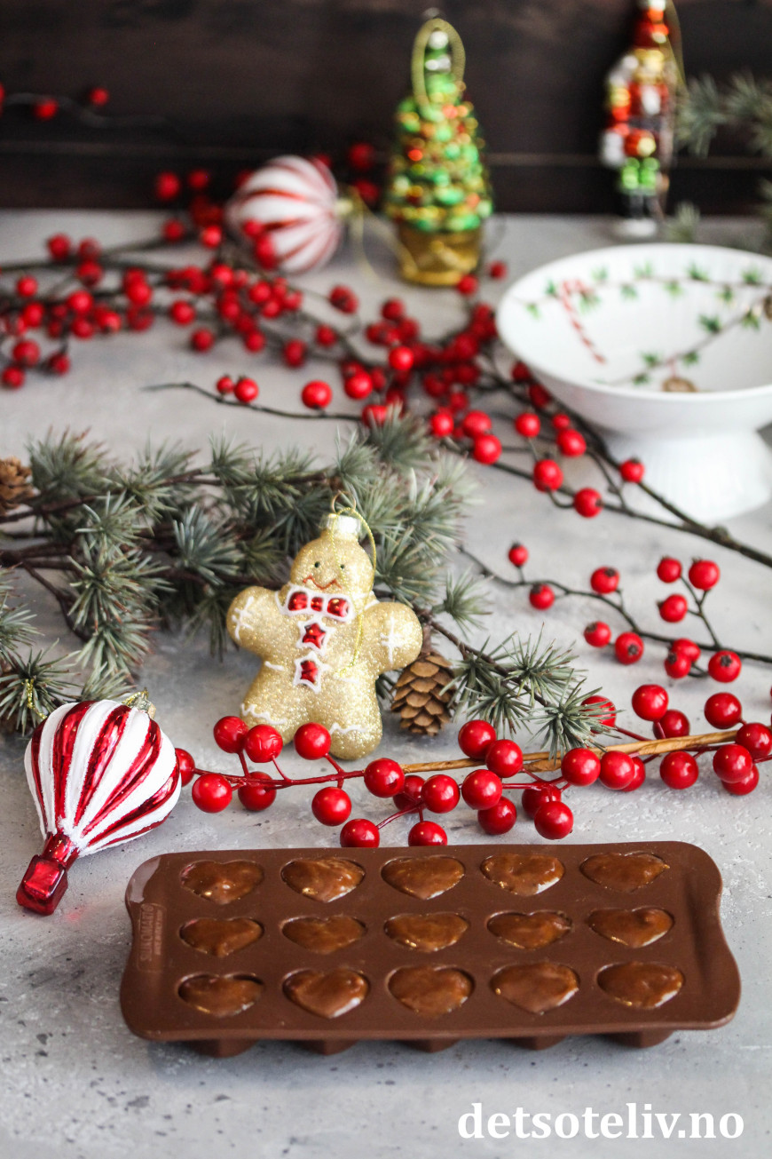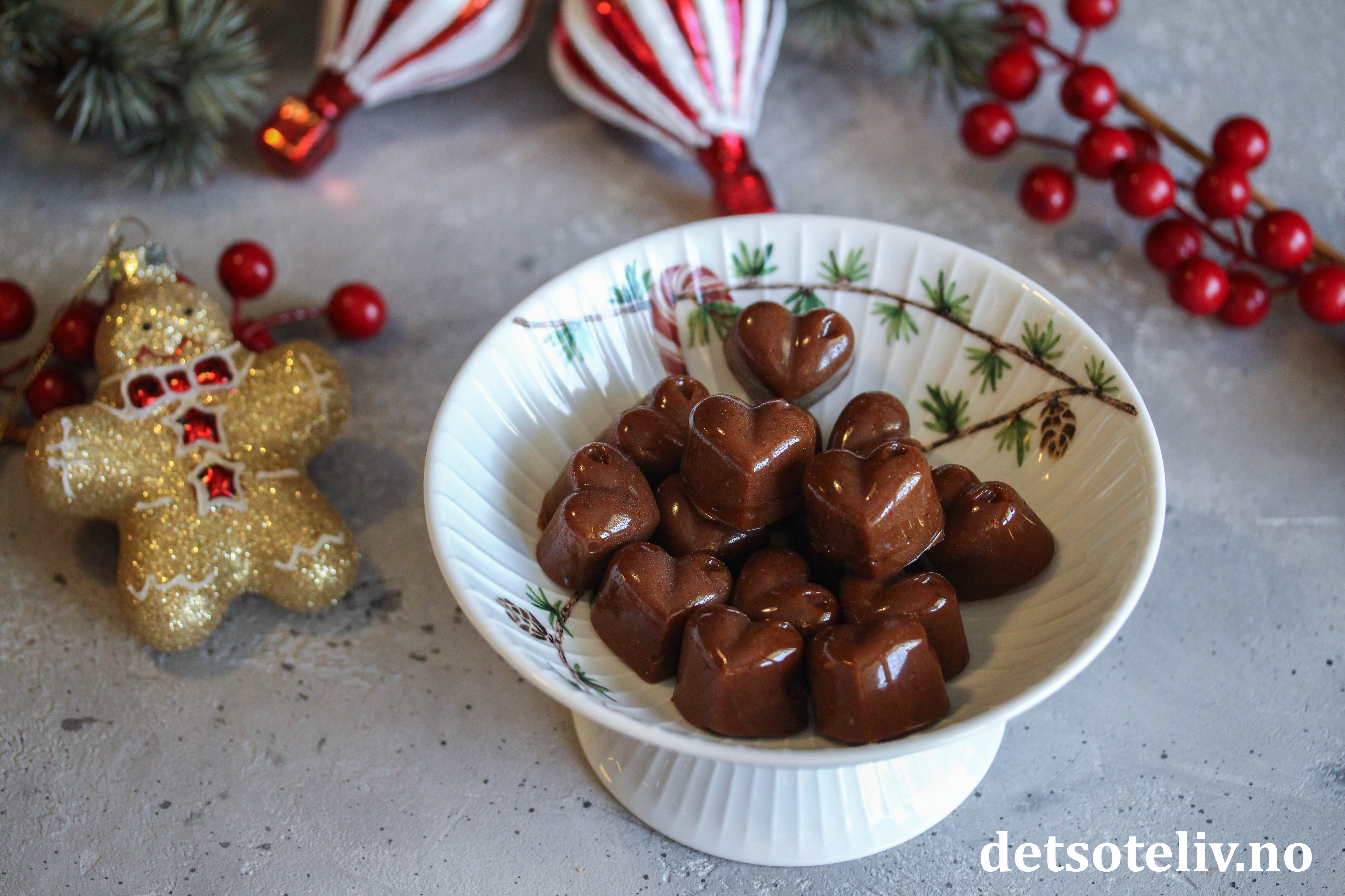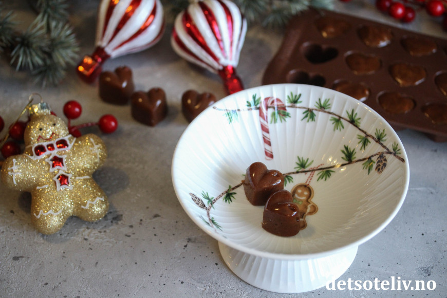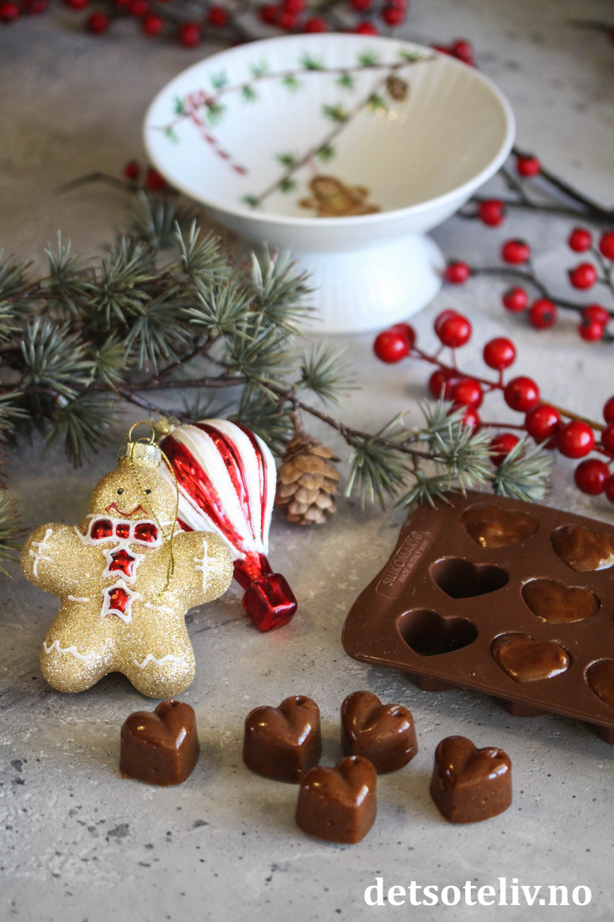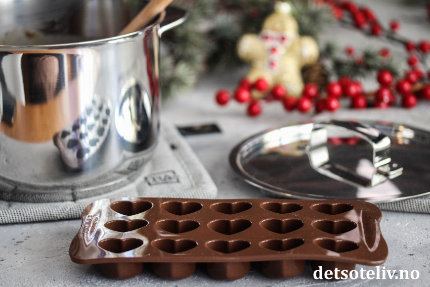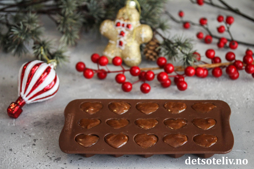 Jeg har her bruk hjerteformede silikonformer, som gjør at karamellene blir ekstra fine å se på.