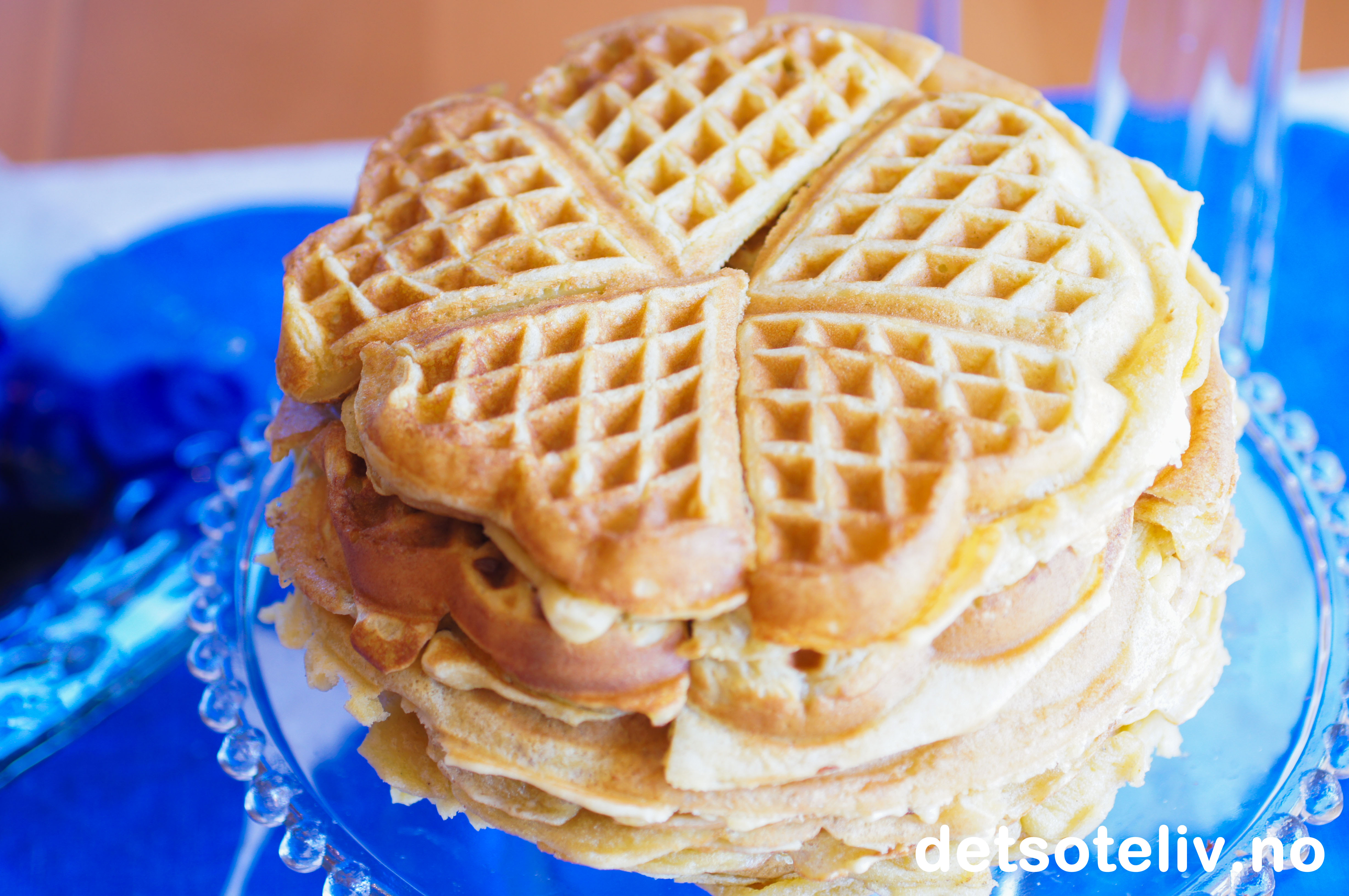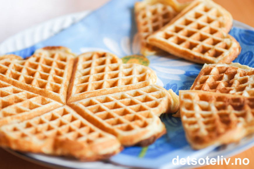 Hvis du vil lage vafler med crème fraîche som er sprø og ikke myke, kan du bruke oppskriften på Crème fraîche vafler her å Det søte liv.