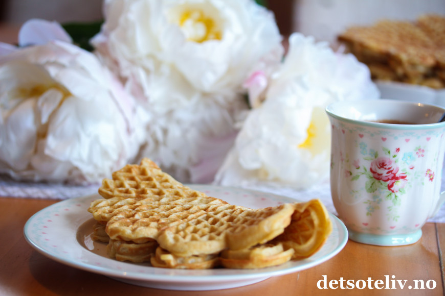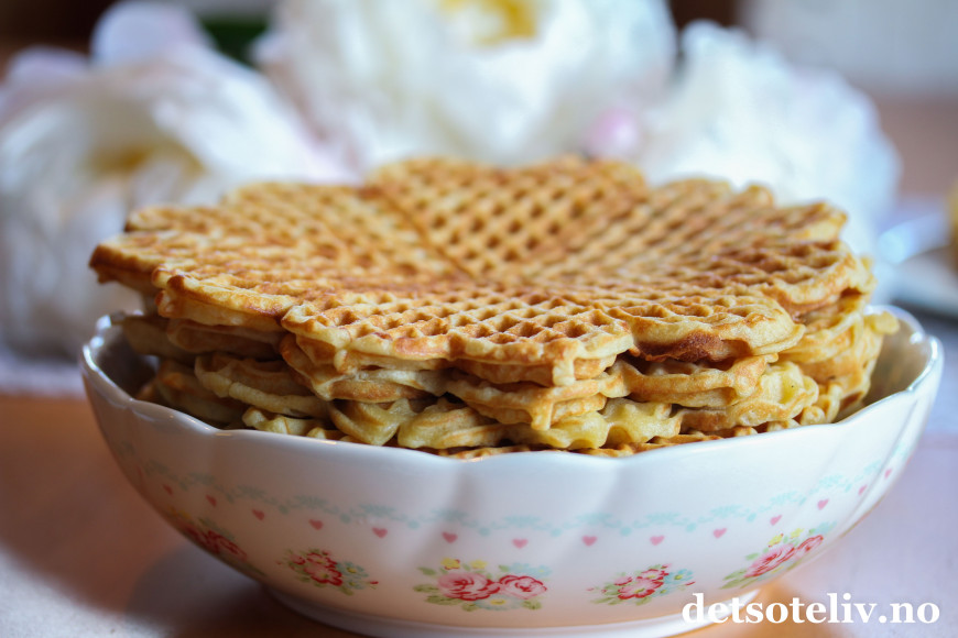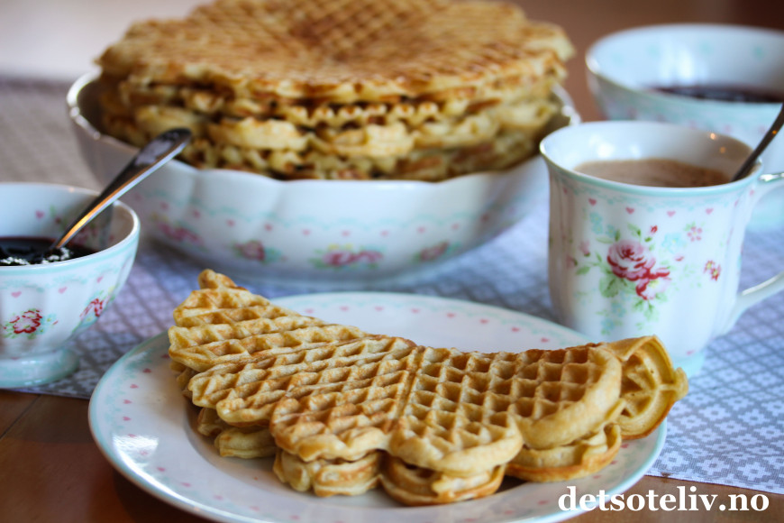 Oppskriften gir en stor porsjon myke, deilige vafler med god smak av vanilje og kardemomme.