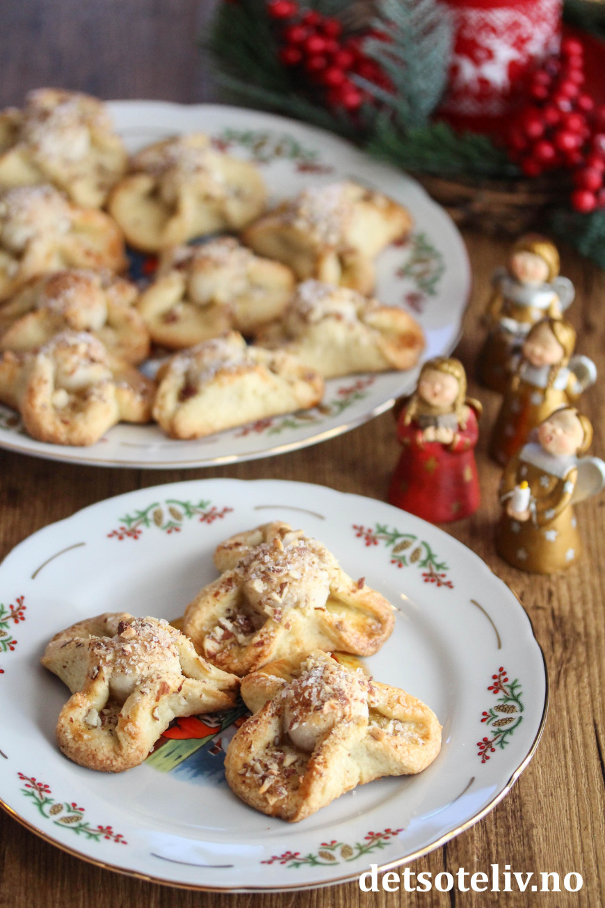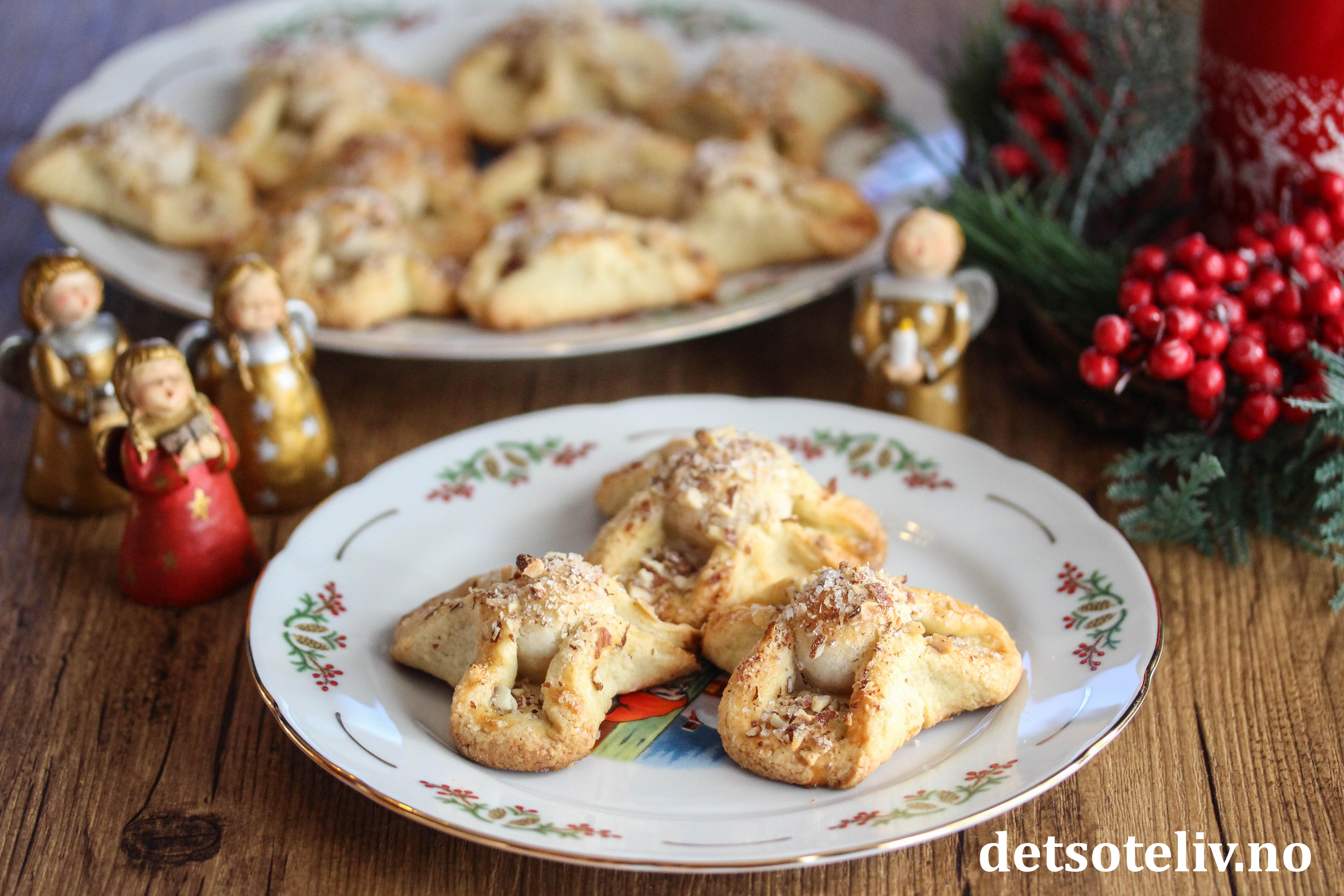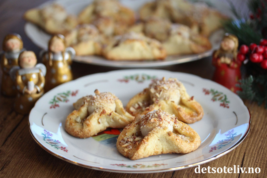 Napoleonshatter er morsomme og kjempegode småkaker laget av mørdeig og marsipanfyll.