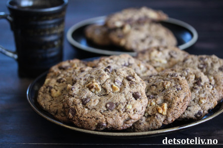 I stedet for chocolate chips kan du bruke grovt hakket kokesjokolade.