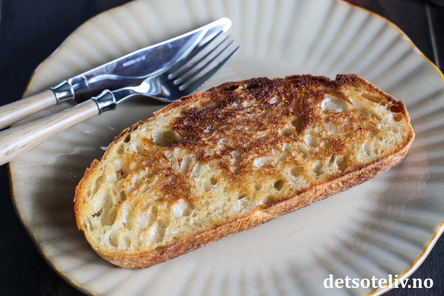 Min favoritt er sprøstekt surdeigsbrød med smør og nektarinsyltetøy!