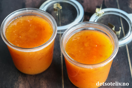 ♥ Denne porsjonen gir to store syltetøyglass (à 5 dl). Det er bare å gange opp oppskriften hvis du vil lage en større porsjon.