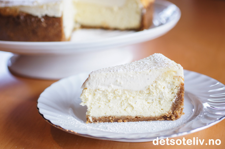 Denne ostekaken stammer visst nok fra et lite, jødisk konditori i New York, og er nå berømt over hele verden! Kaken er mektig og fløyelsmyk i konsistensen, og har nydelig smak!