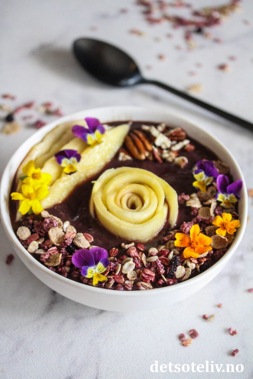 ♥ Jeg brukte her en nydelig müsli med açaí og blåbær, men du kan bruke akkurat den du har og liker best.