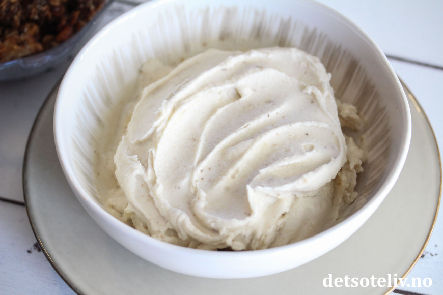 Nice Cream (naturell) passer veldig godt sammen banankakegranolaen fordi banansmaken da kommer veldig godt frem.