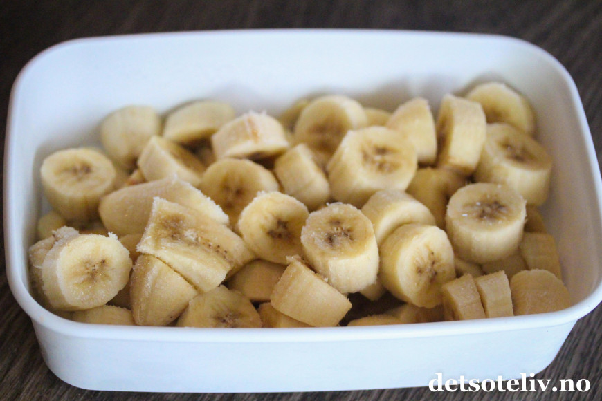 Finn frem frosne bananbiter fra fryseren (sørg for å alltid ha dette tilgjengelig ).