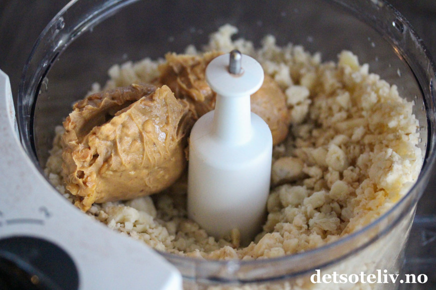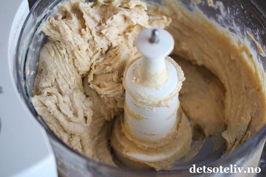 Ha frosne bananbiter i en food processor med hakkekniv. Kjør blandingen sammen. I starten vil den virke kornete og tørr. Tilsett peanøttsmør.