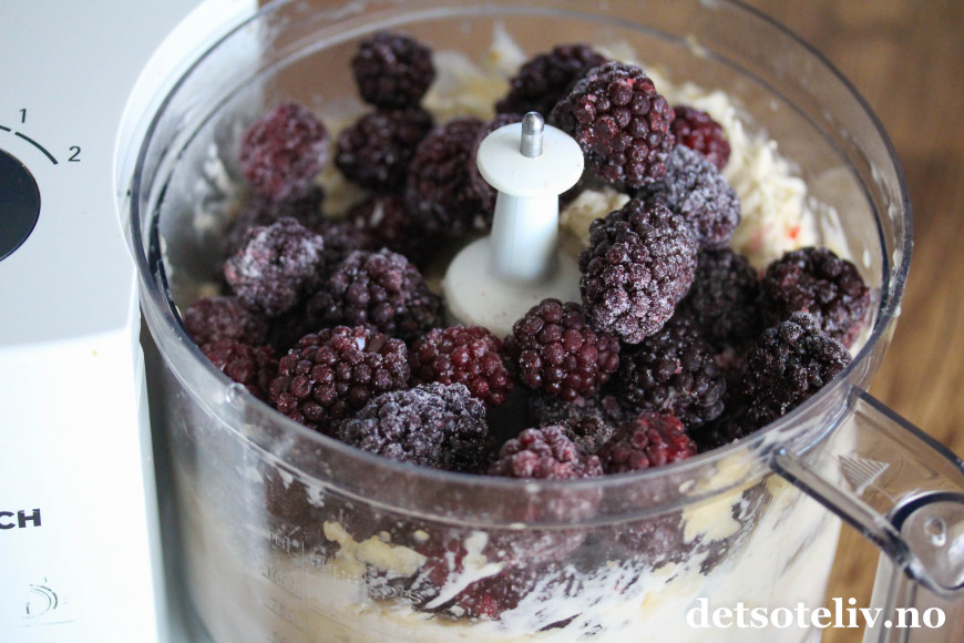 Tilsett frosne bjørnebær.