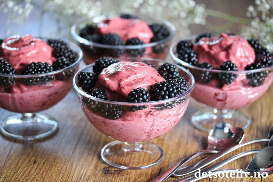 Nydelig å kose seg med sunn iskrem med banan og bjørnebær!