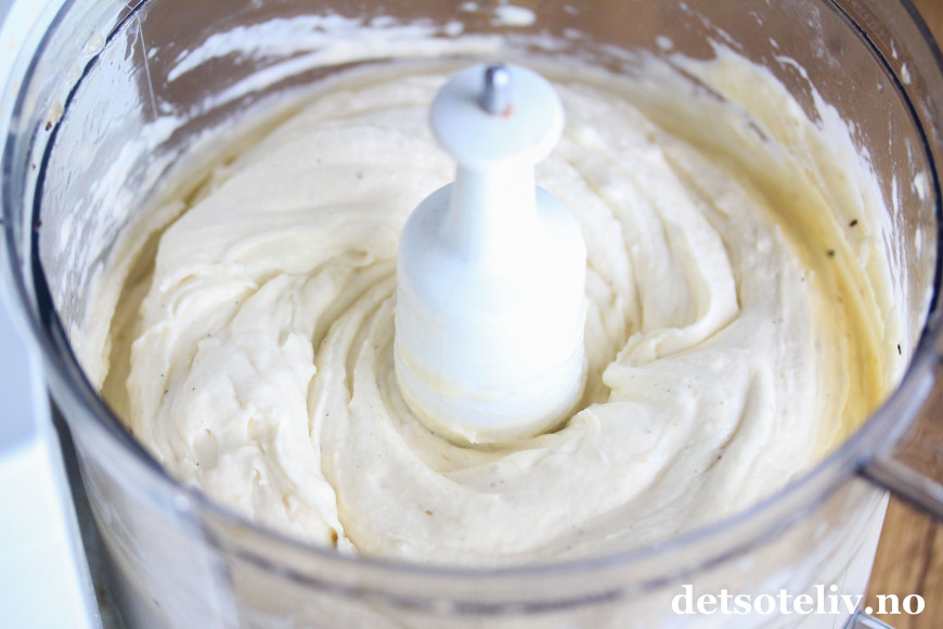 Ligner ikke på iskrem enda, men bare fortsett å kjøre i vei med food processoren. Stopp opp food processoren innimellom og skrap ned bananbitene som legger seg i kantene, så også de blir moste.