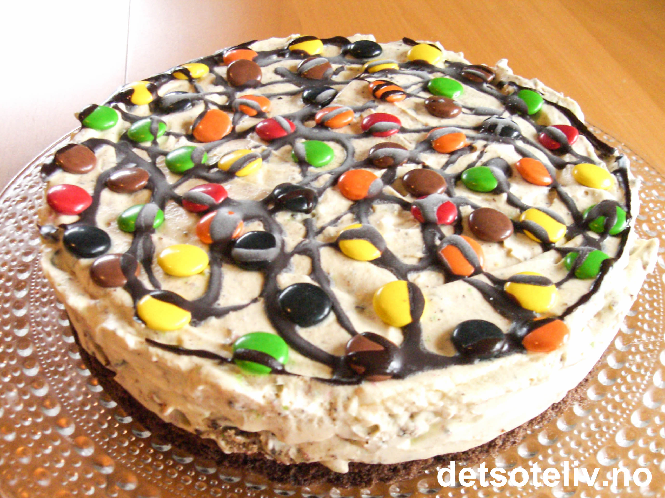 Ta den frosne kaken ut av formen ca 10 min før servering. Pynt den frosne kaken med Non Stop og ringle over sjokoladesaus.