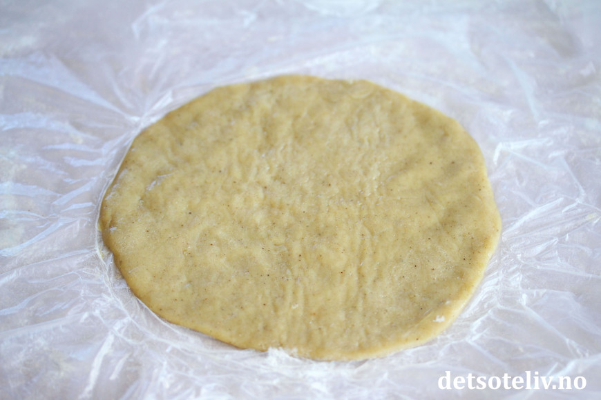 Ha ekstra mel på bakebordet. Del deigen i 10 like store emner. Klipp opp en liten plastpose og bruk plasten som underlag i tillegg til ekstra hvetemel på hendene. Klapp hvert emne utover på plasten til en sirkel på størrelse med en asjett (ca. 18 cm i diameter).