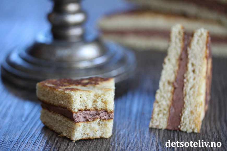 ♥ I stedet for sjokoladekrem, kan du fylle Nordlandskakene med smørkrem laget av 150 g smør, 150 g melis og 1 ts kanel.