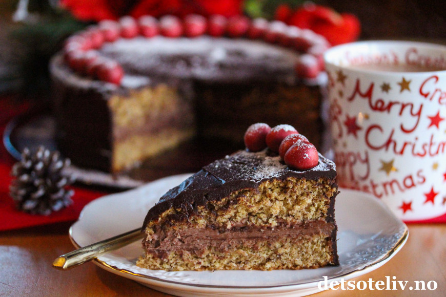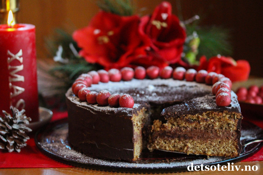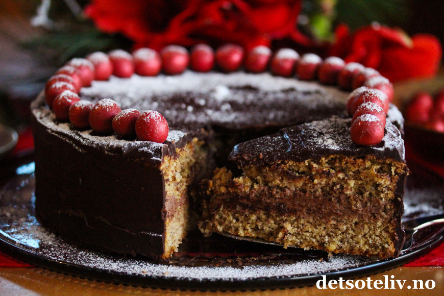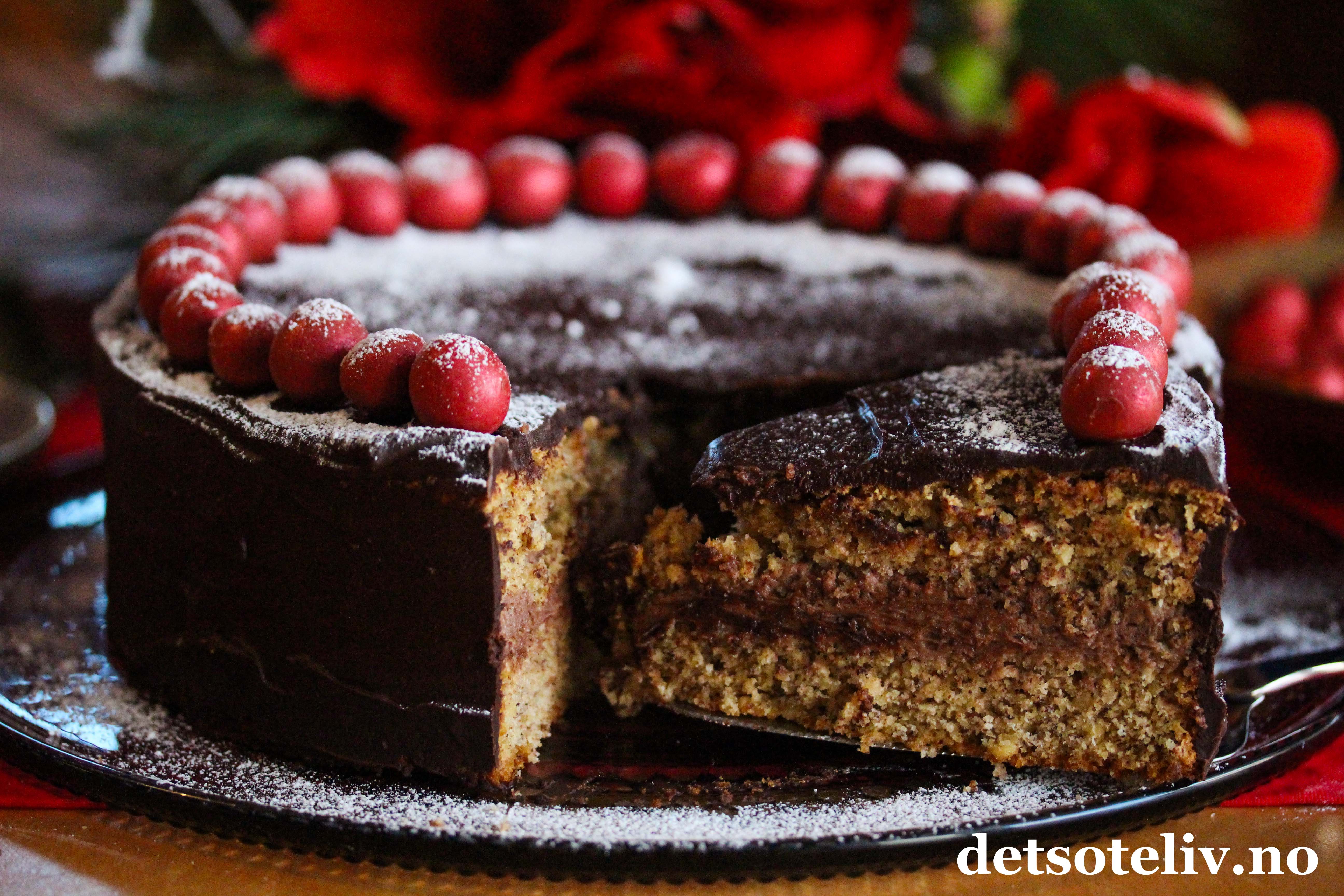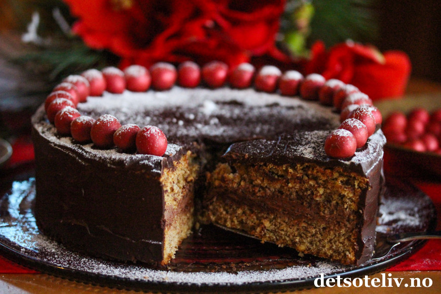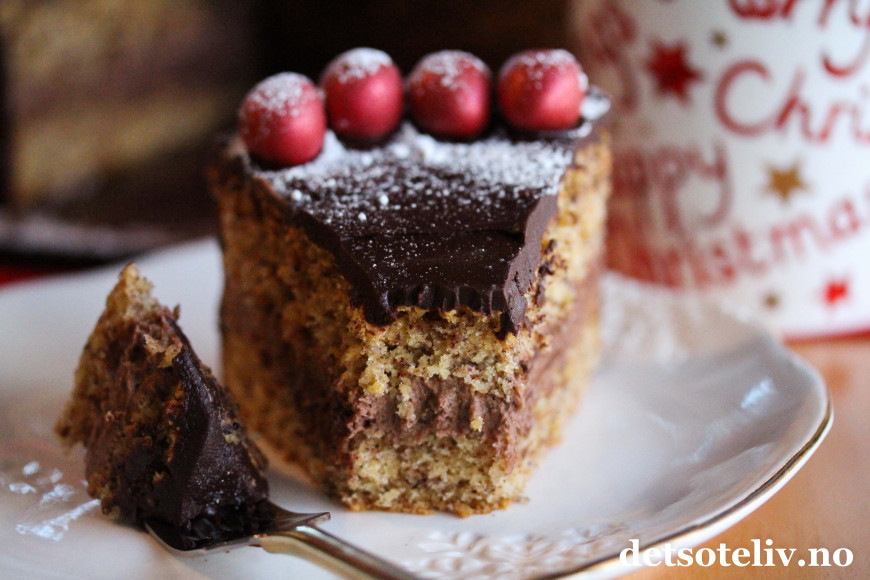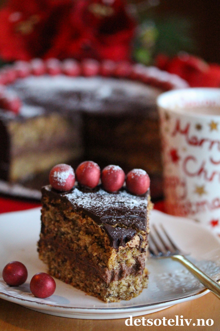Deilig, saftig og veldig smakfull nøttekake med sjokolade og mild kryddersmak.