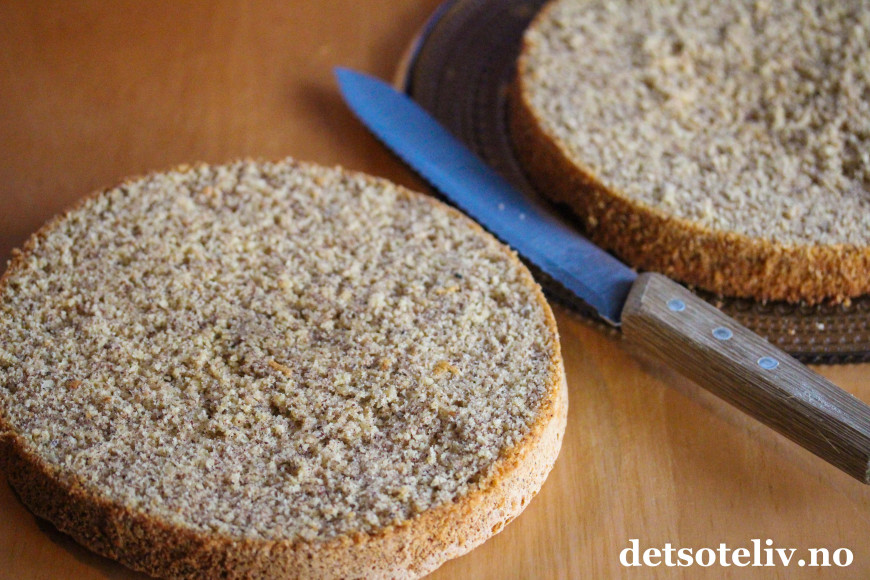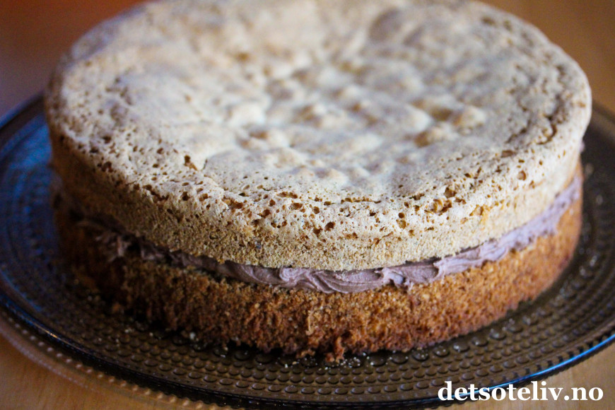 ♥ La nøttekaken bli helt kald før du fyller den med sjokoladekrem, ellers vil sjokoladekremen smelte. Du kan gjerne lage nøttekaken klar dagen i forveien. Oppbevar den godt innpakket i plast så den ikke tørker ut.