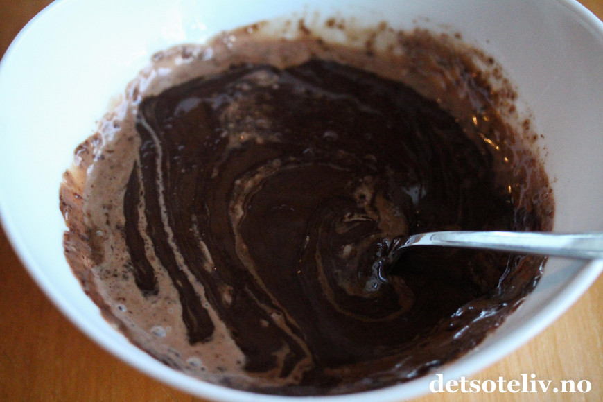 Pisk romtemperert smør luftig med kakaopulver, melis og melk.