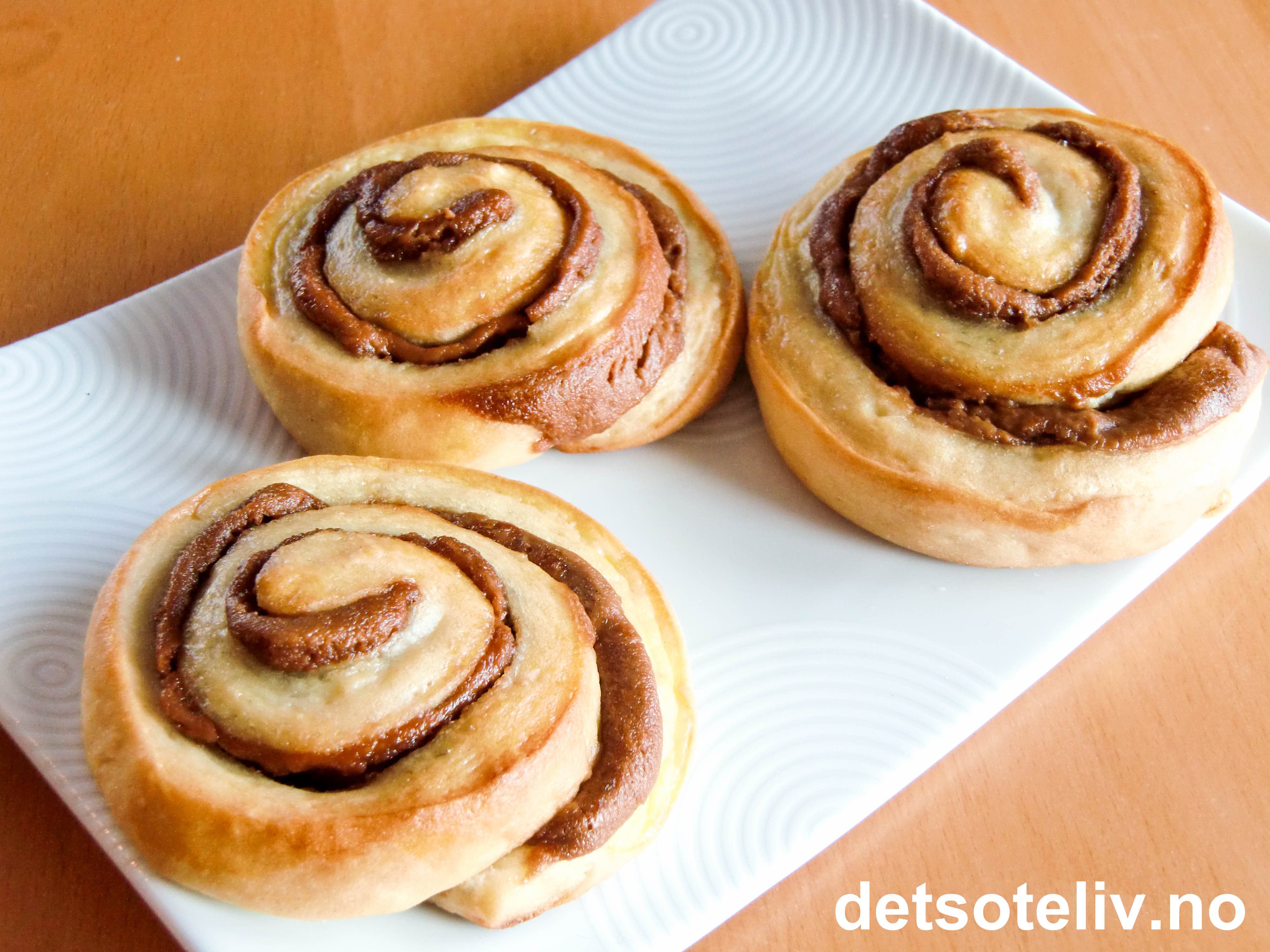 Smuldre opp gjæren i en bakebolle. Smelt smøret. Bland melken i smøret og varm opp blandingen til den er lunken (37°C). Ha litt av smørmelken i bakebollen og løs opp gjæren i dette. Tilsett resten av smørmelken, lett sammenpisket egg og sukker. Begynn så å blande i det meste av melet til en jevn deig. La deigen heve tildekket i ca 40 min.