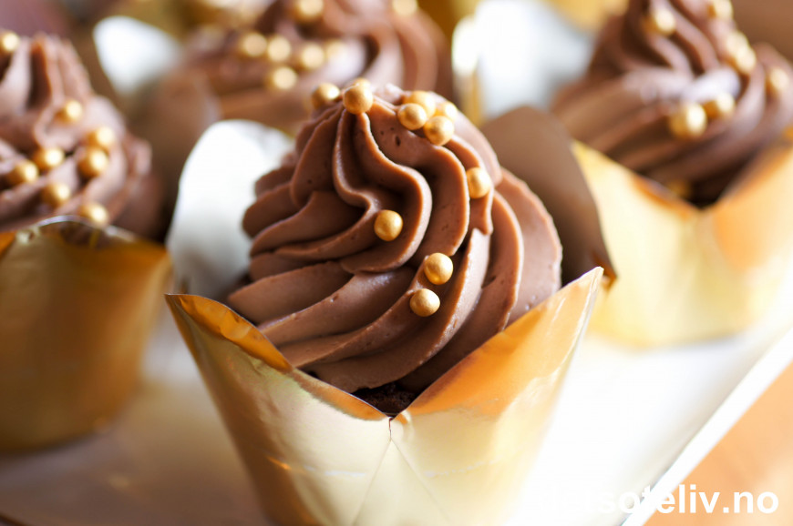 ♥ De gullfargede cupcakeformene er av merket Wilton og fås blant annet kjøpt i nettbutikken til Cacas, se her.