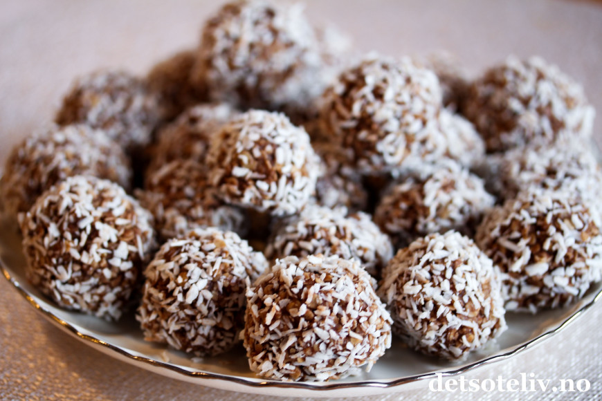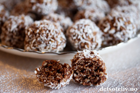 ♥ Som nevnt ligner dette på "Sjokoladekuler". Se også oppskrift på "Konfektkuler" og "Kanonkuler".