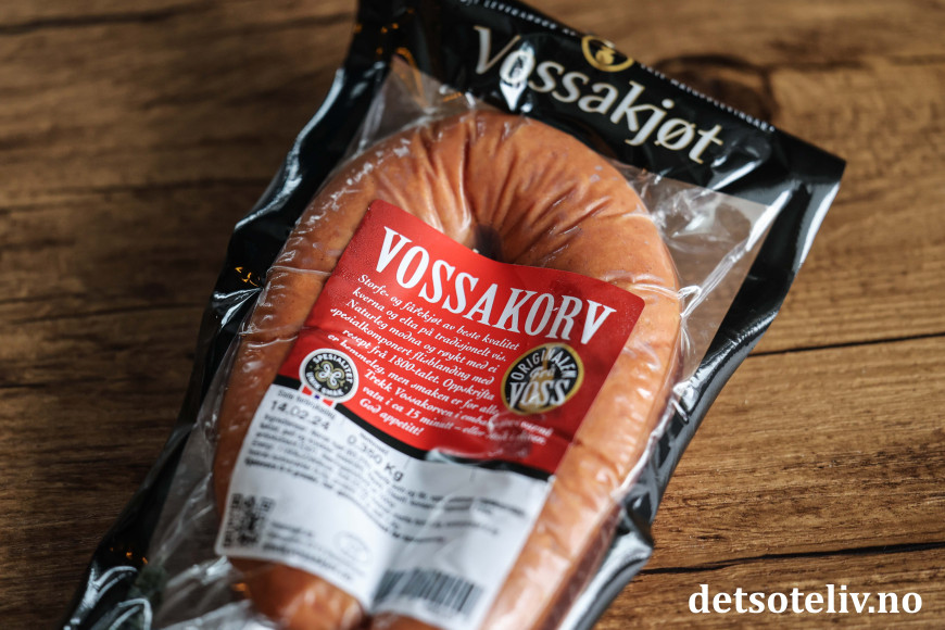 Legg biter av vossakorv oppå pinnekjøttet den siste halvtimen av dampingen.