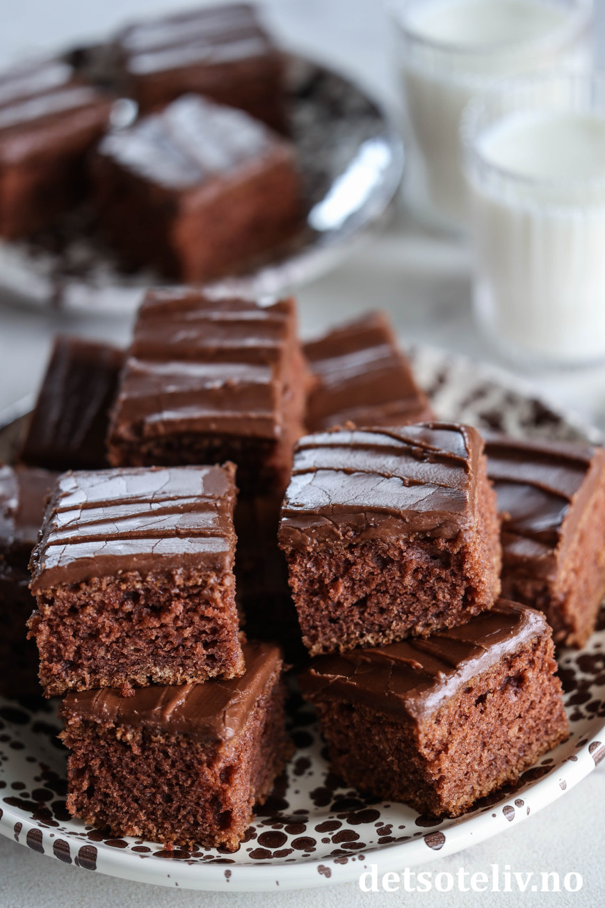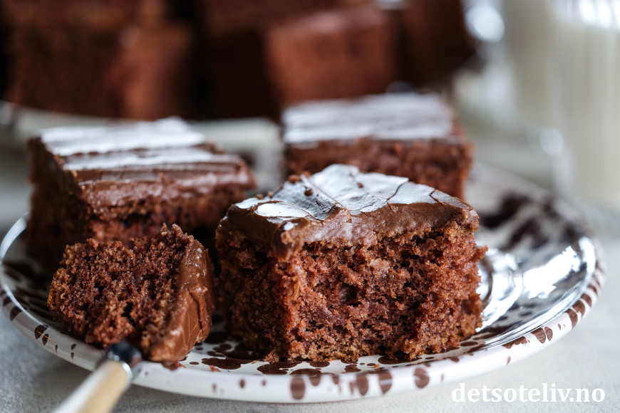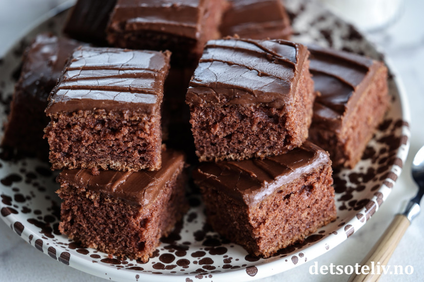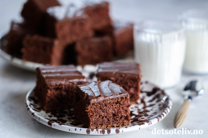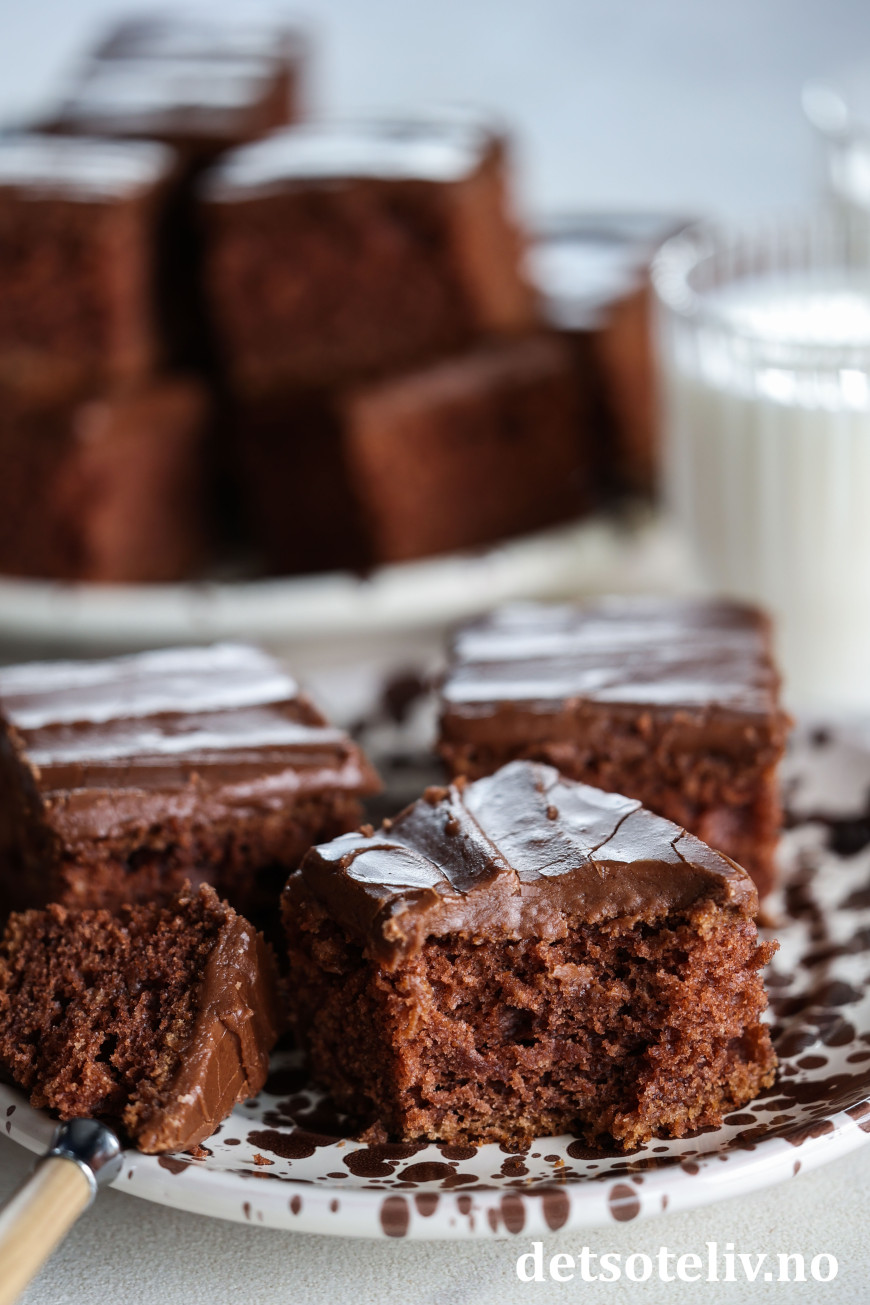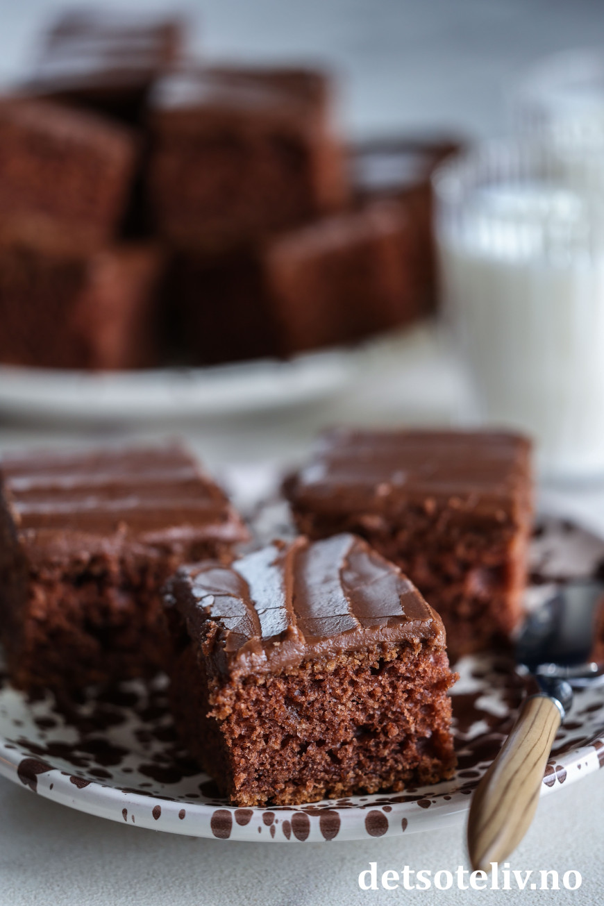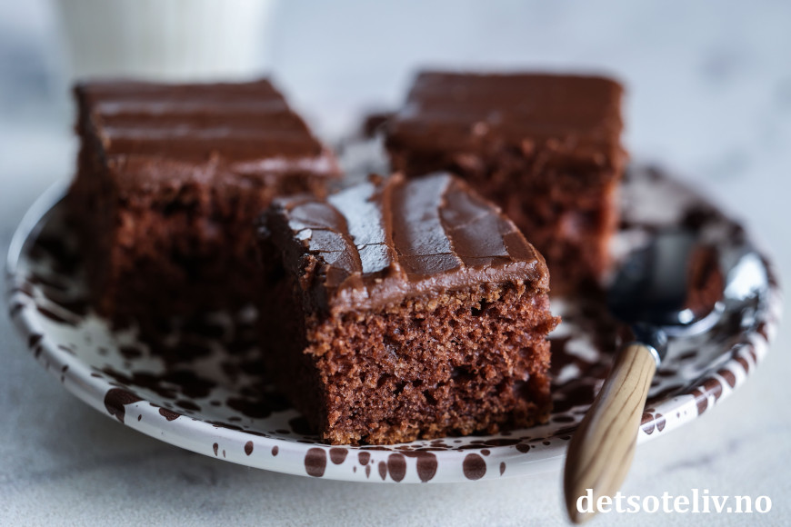 Ah, så godt med en myk og deilig sjokoladekake i langpanne!