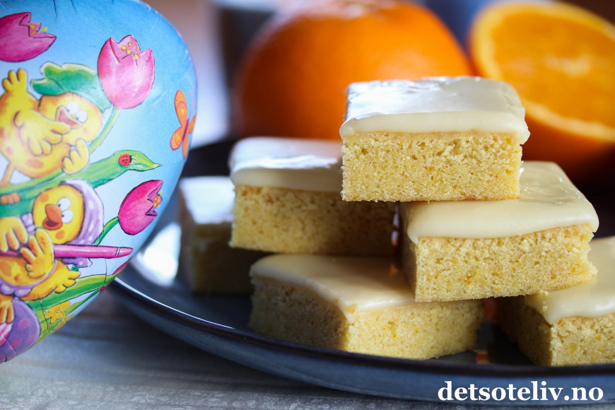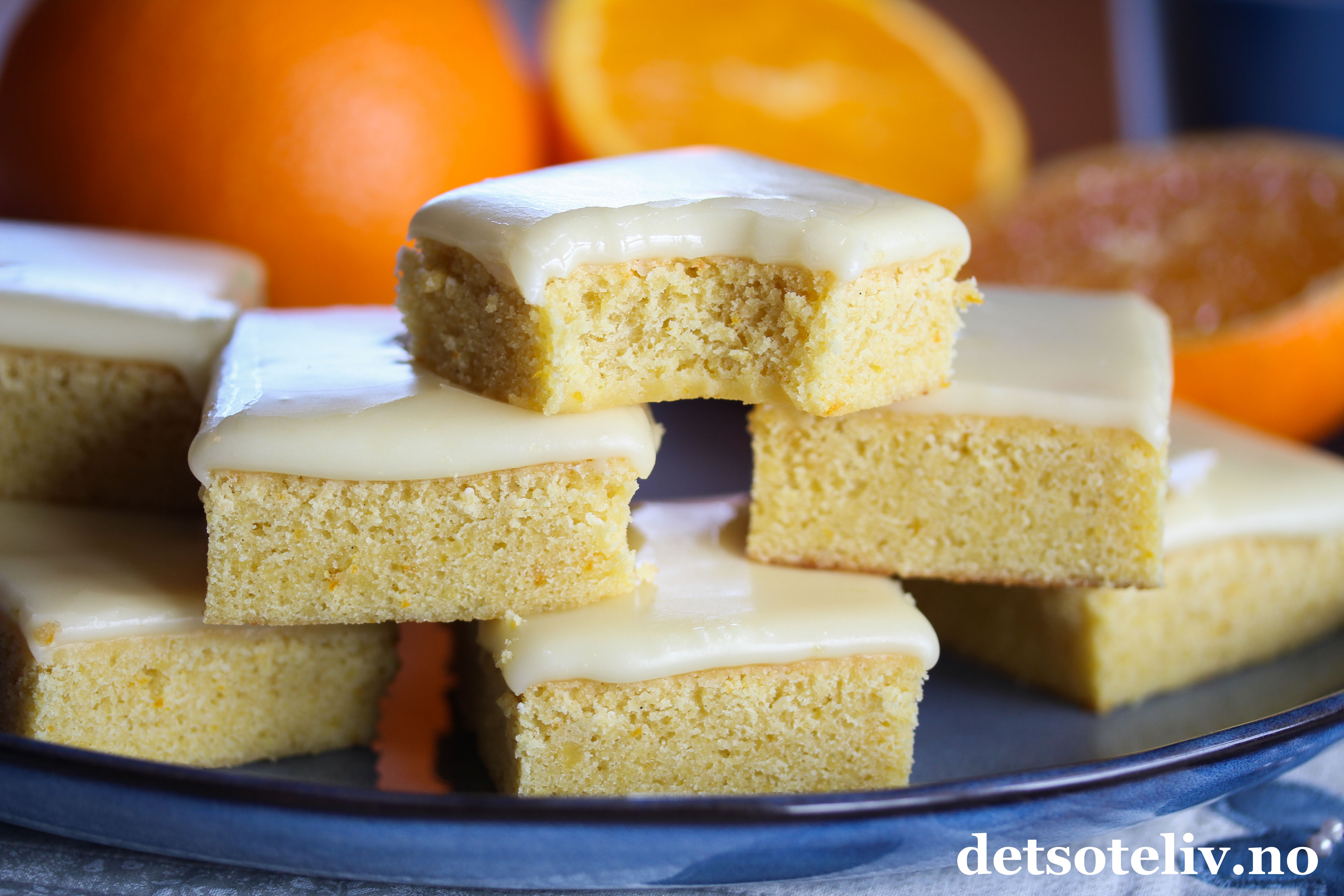 Før påske var det veldig mange av dere som søkte opp oppskriften på Lemonies, som er en deilig sitronkake med den samme, bløte konsistensen som brownies. Jeg fikk selv lyst til å prøve kakene med appelsinsmak, og det ble også kjempegodt! Jeg kaller dem Orangies..