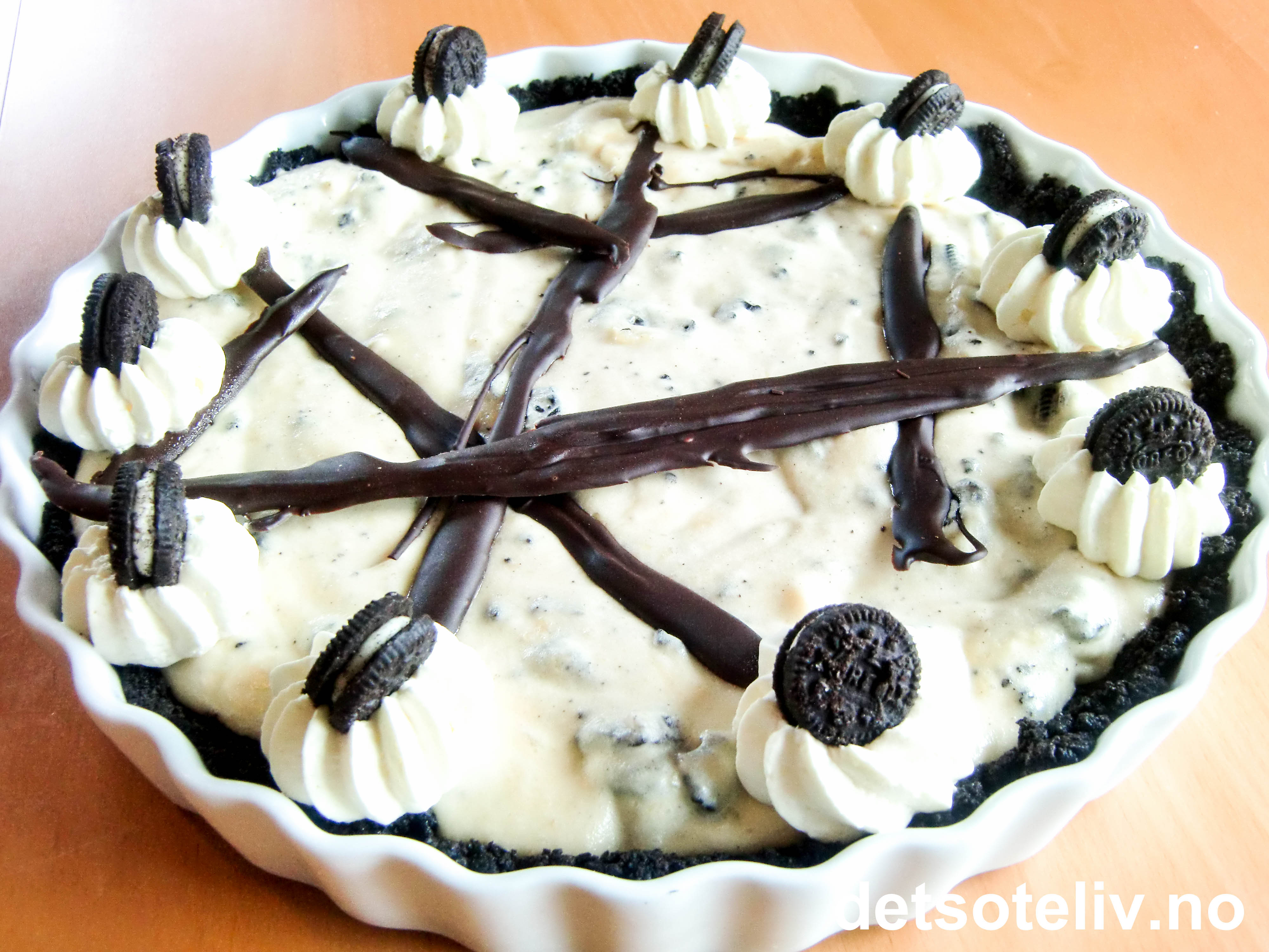 "Oreo Cookie Cream Pie" smaker nydelig servert sammen med friske, søte jordbær!