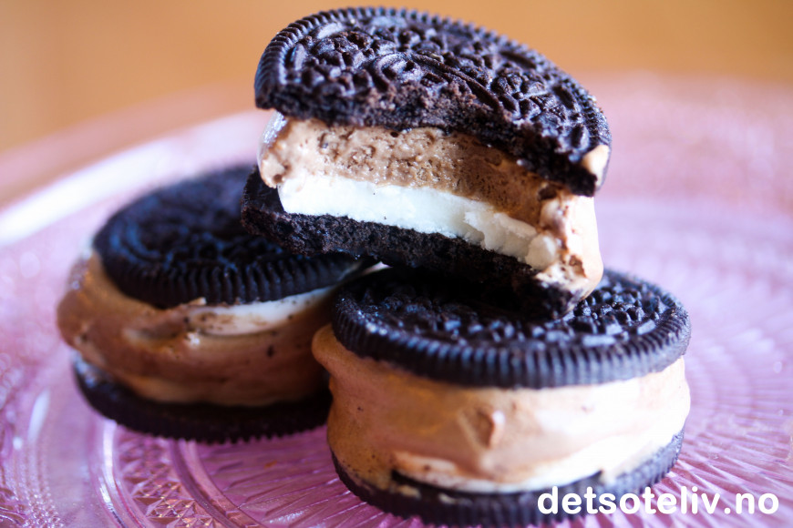 Nydelige, små "Oreo iskremsandwich" lager du på null komma niks!