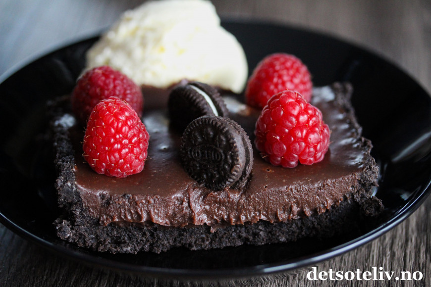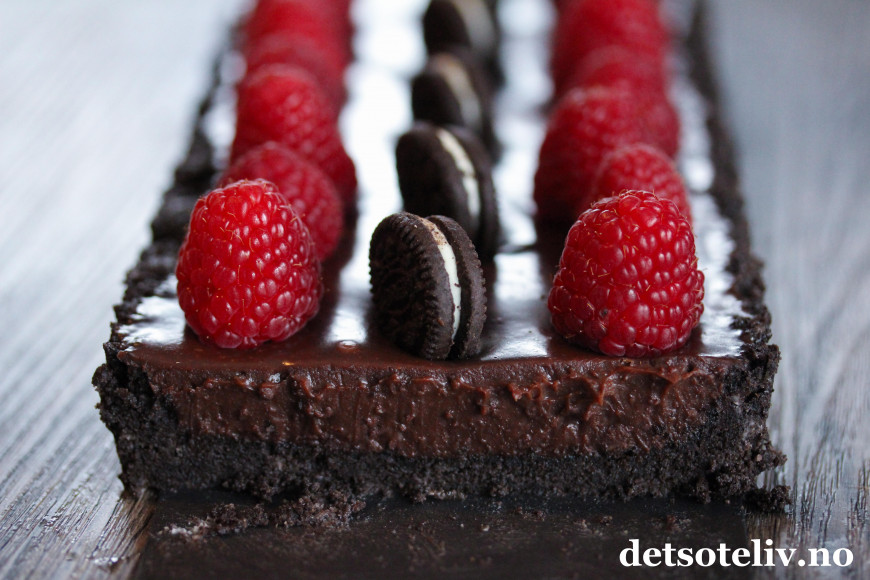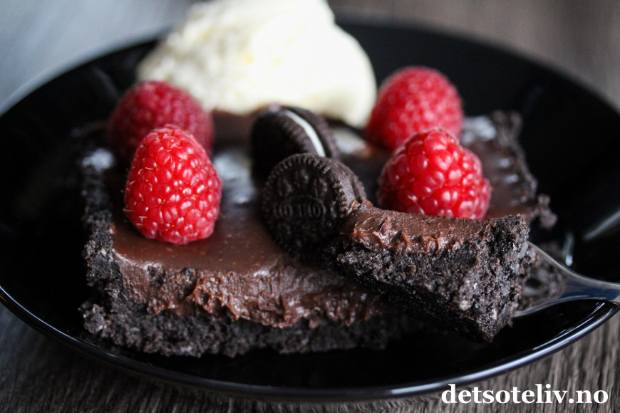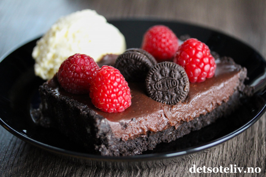 Jeg ønsker å starte den nye uken like fantastisk - og litt "naughty" , så her kommer en ikke spesielt sunn, men skikkelig deeeilig terte med masse Oreokjeks i bunnen og et mektig, kremete sjokoladefyll.